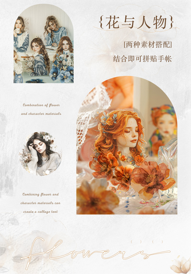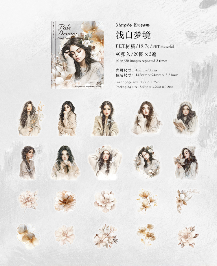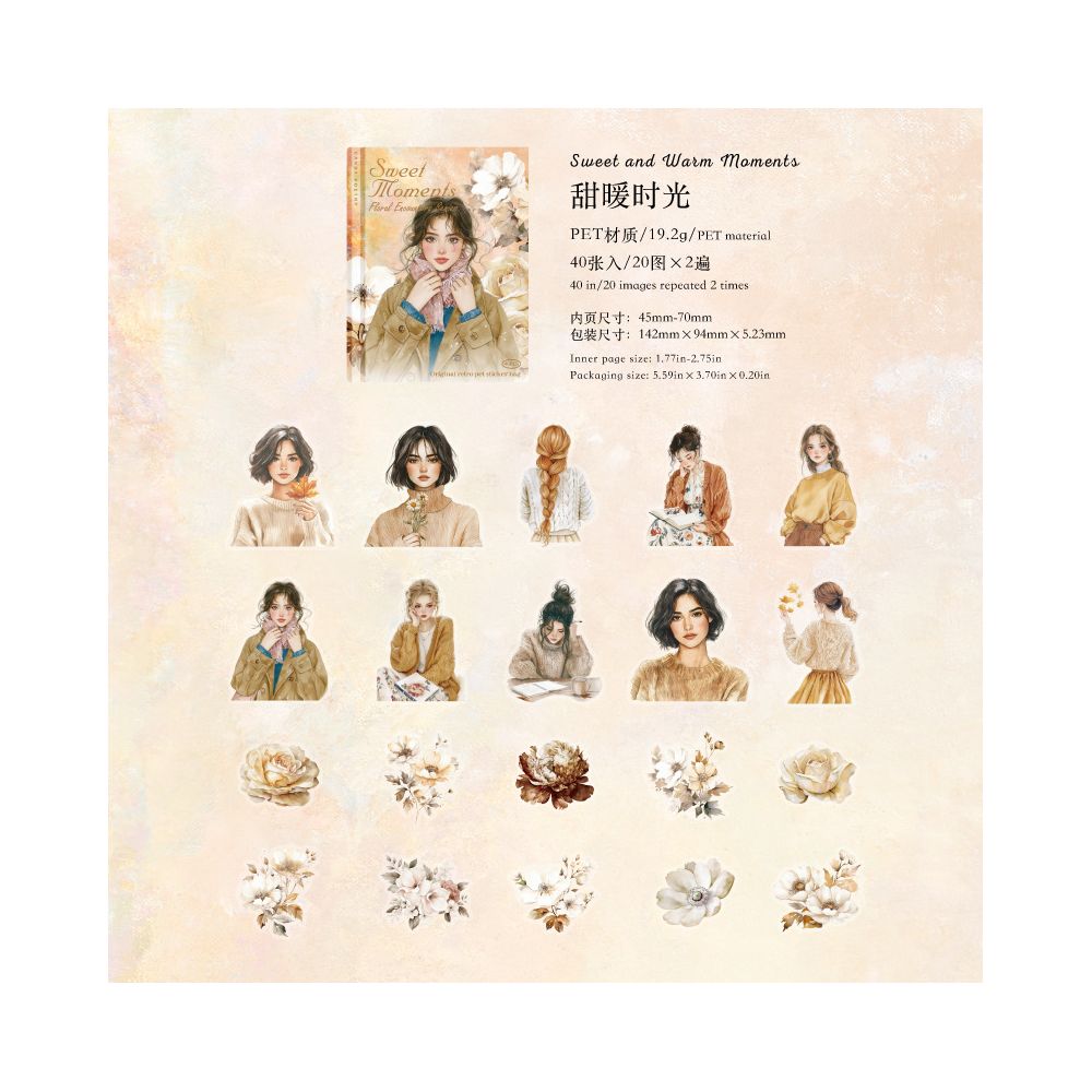 Floral Encounters Series Character PET Stickers 6 Styles 40 Pcs