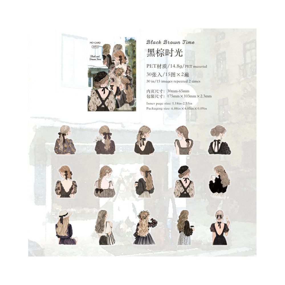 Turning Moment Series Retro Character PET Stickers 30 Pcs 4 Styles