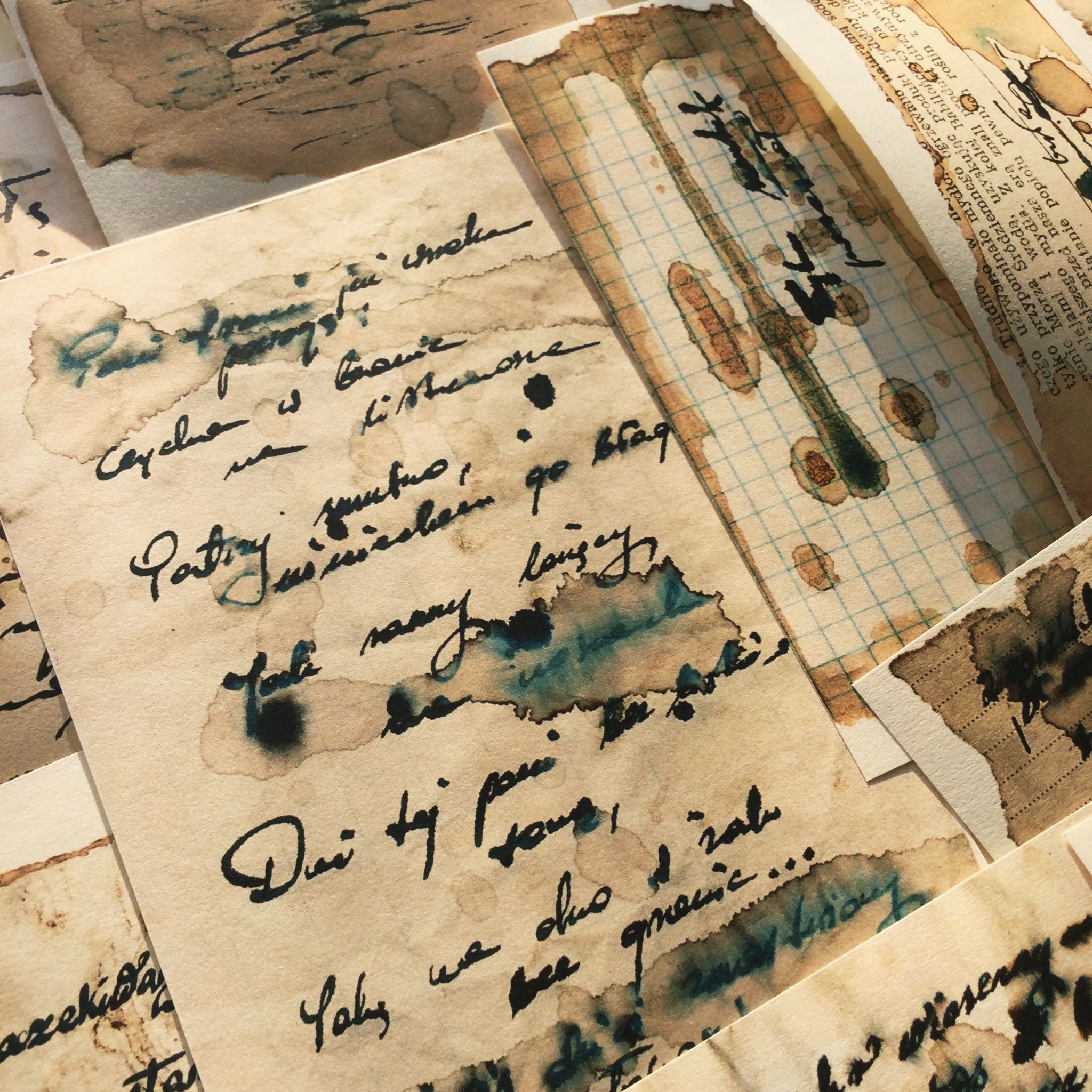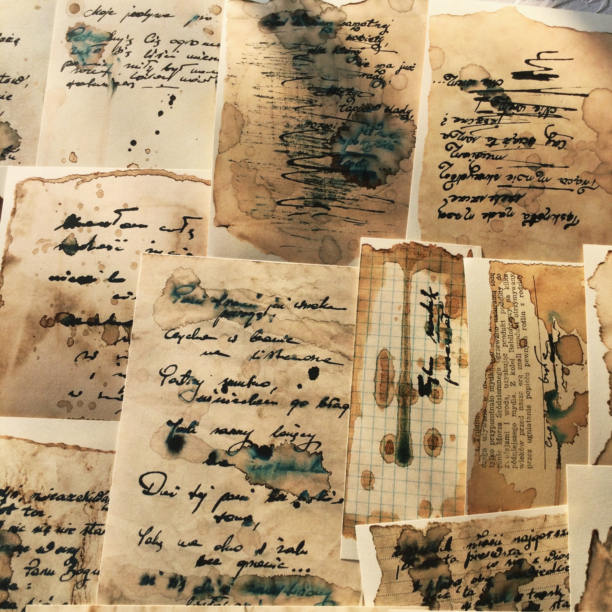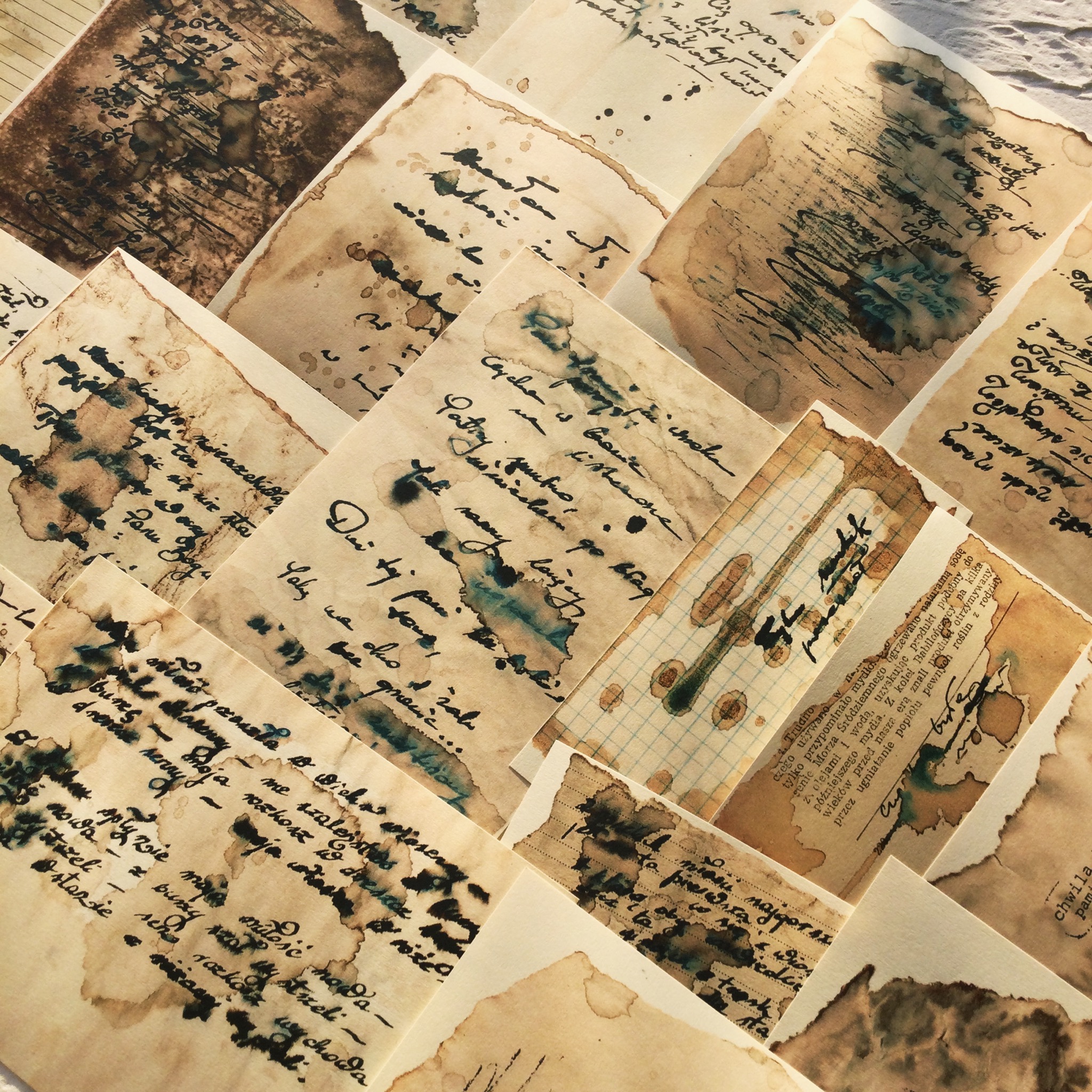 Retro Dark Ink Stained English Vintage paper A4 6 Sheets - ViktaShop
