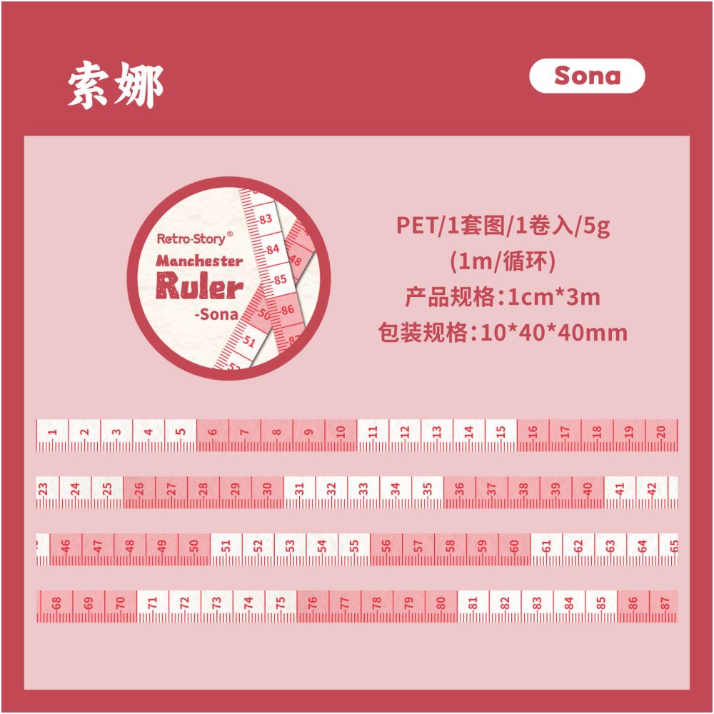 Ruler Series Retro Measuring Washi Tape 6 Designs 1cm x 3m