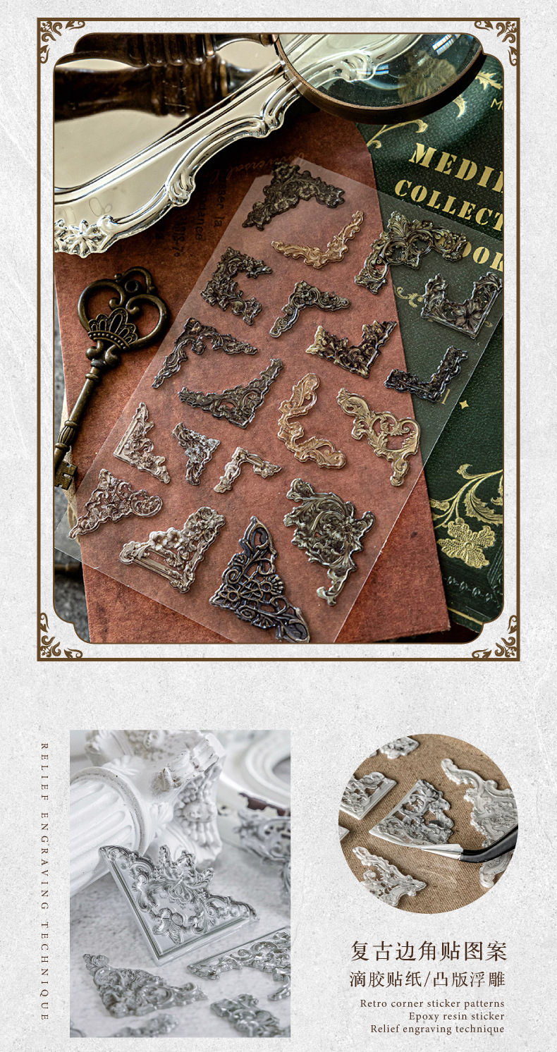 Time Album Series Retro Original Corner Paper Stickers 6 Styles 1 Sheet image 1