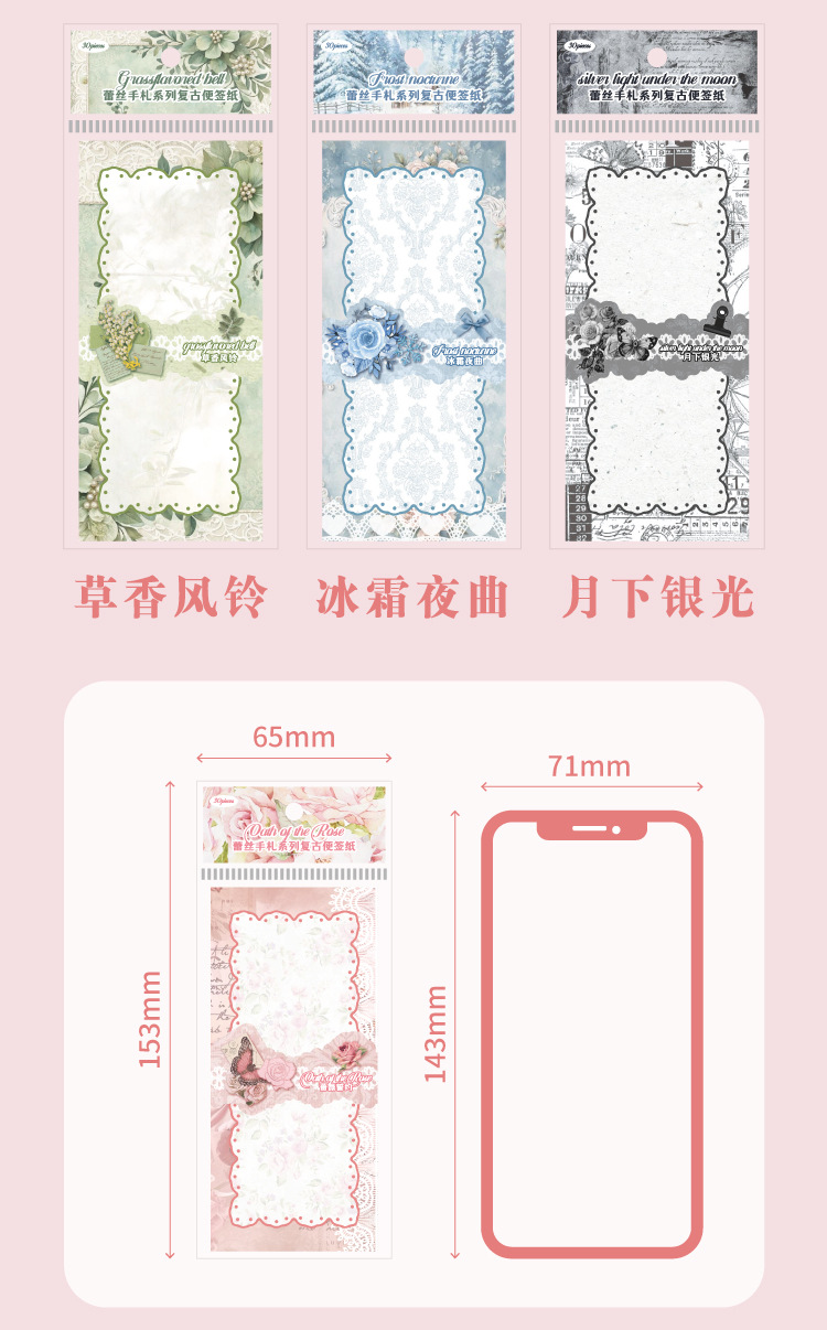 Vintage Paper Stickers with Lace Design 30 Sheets 6 Styles