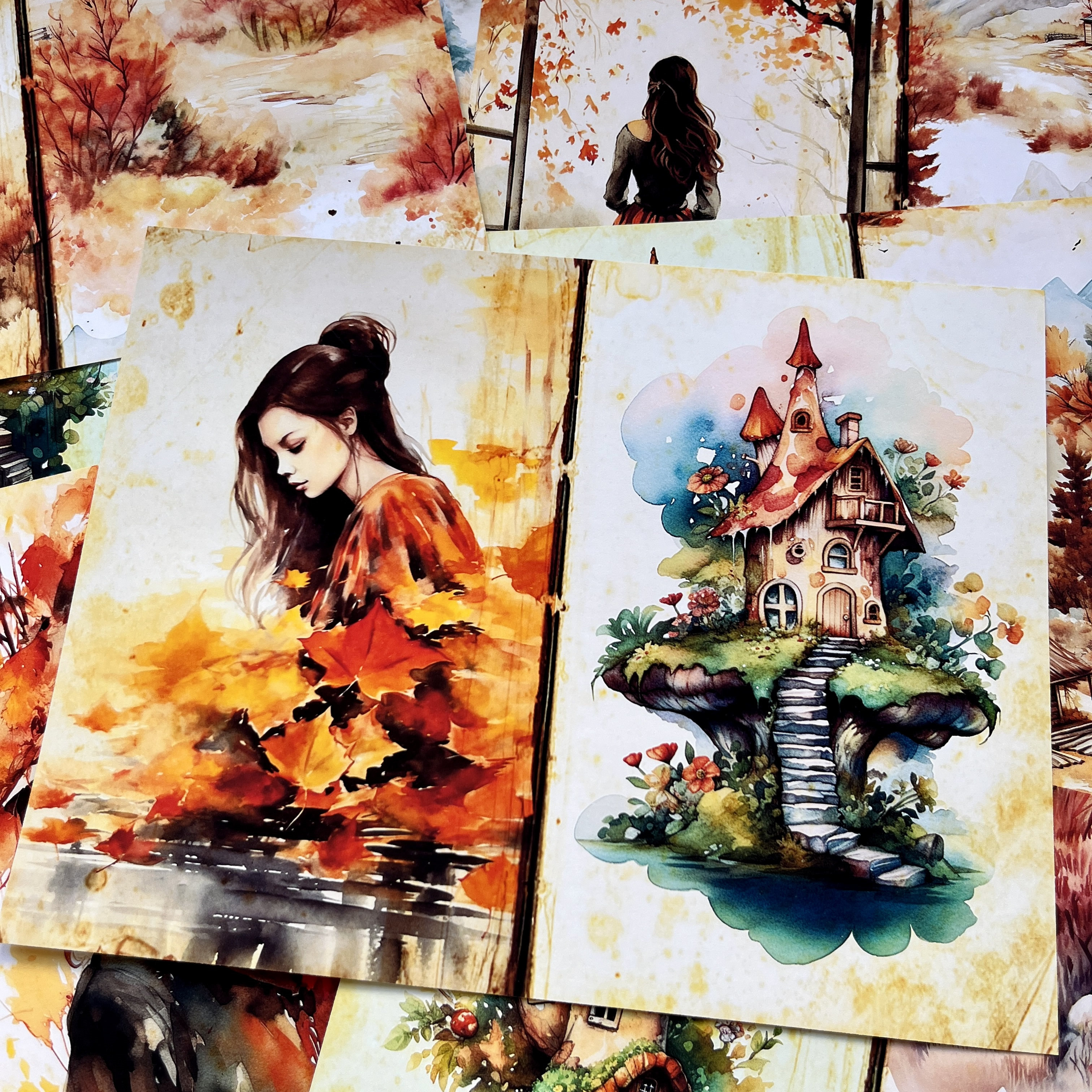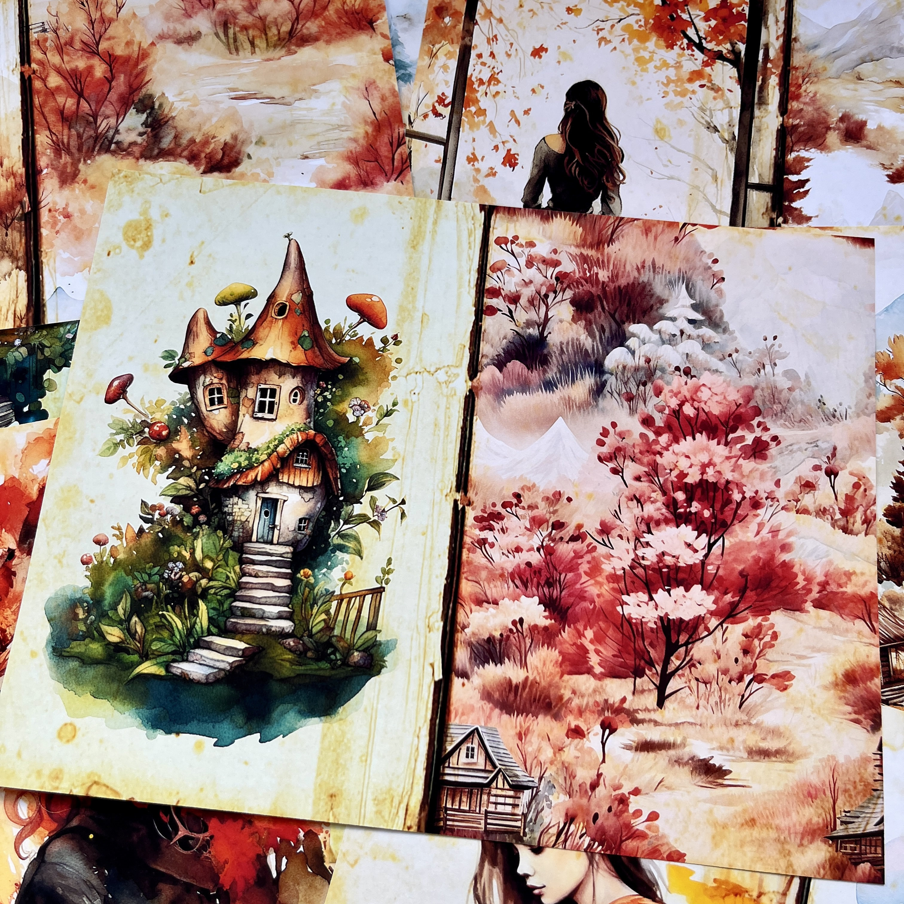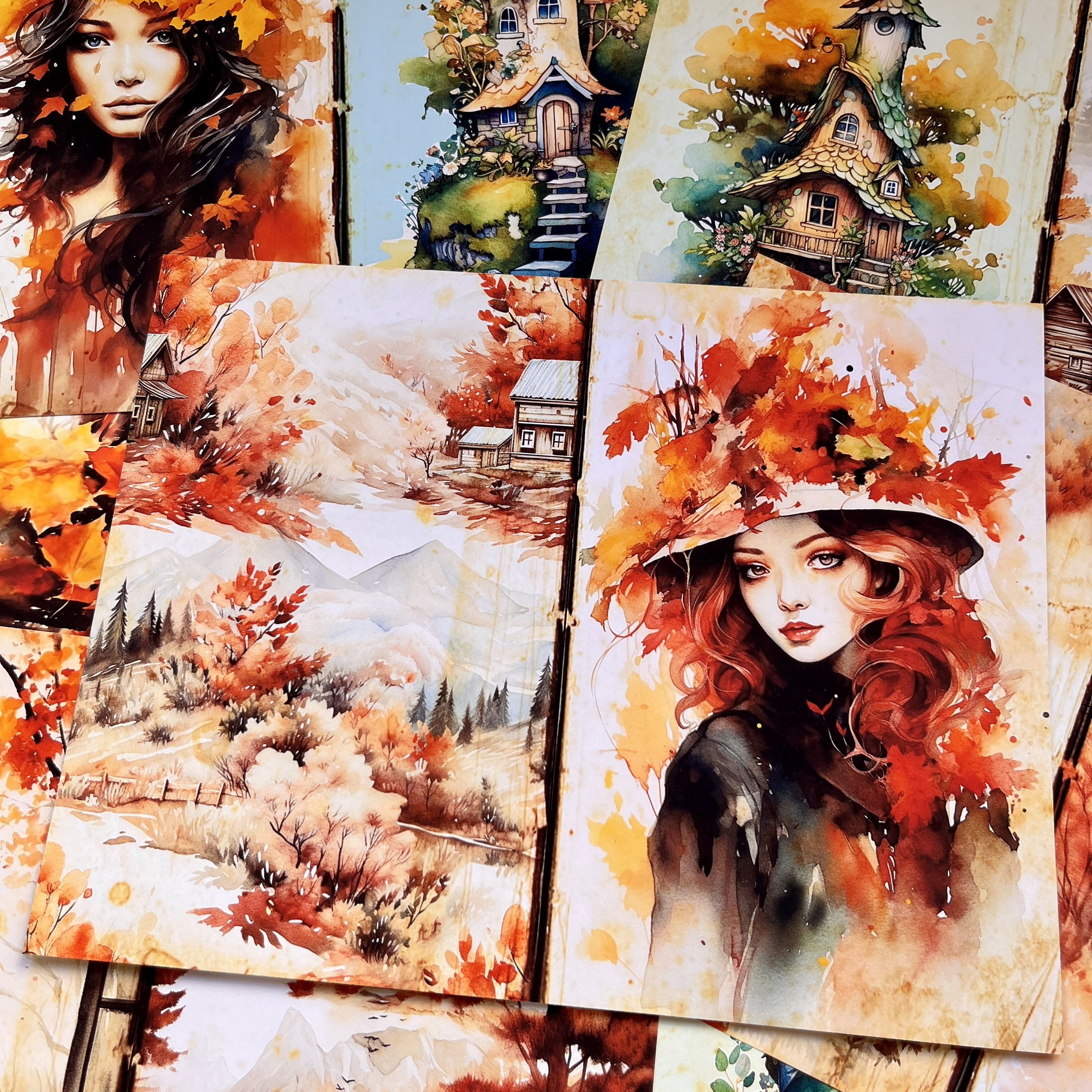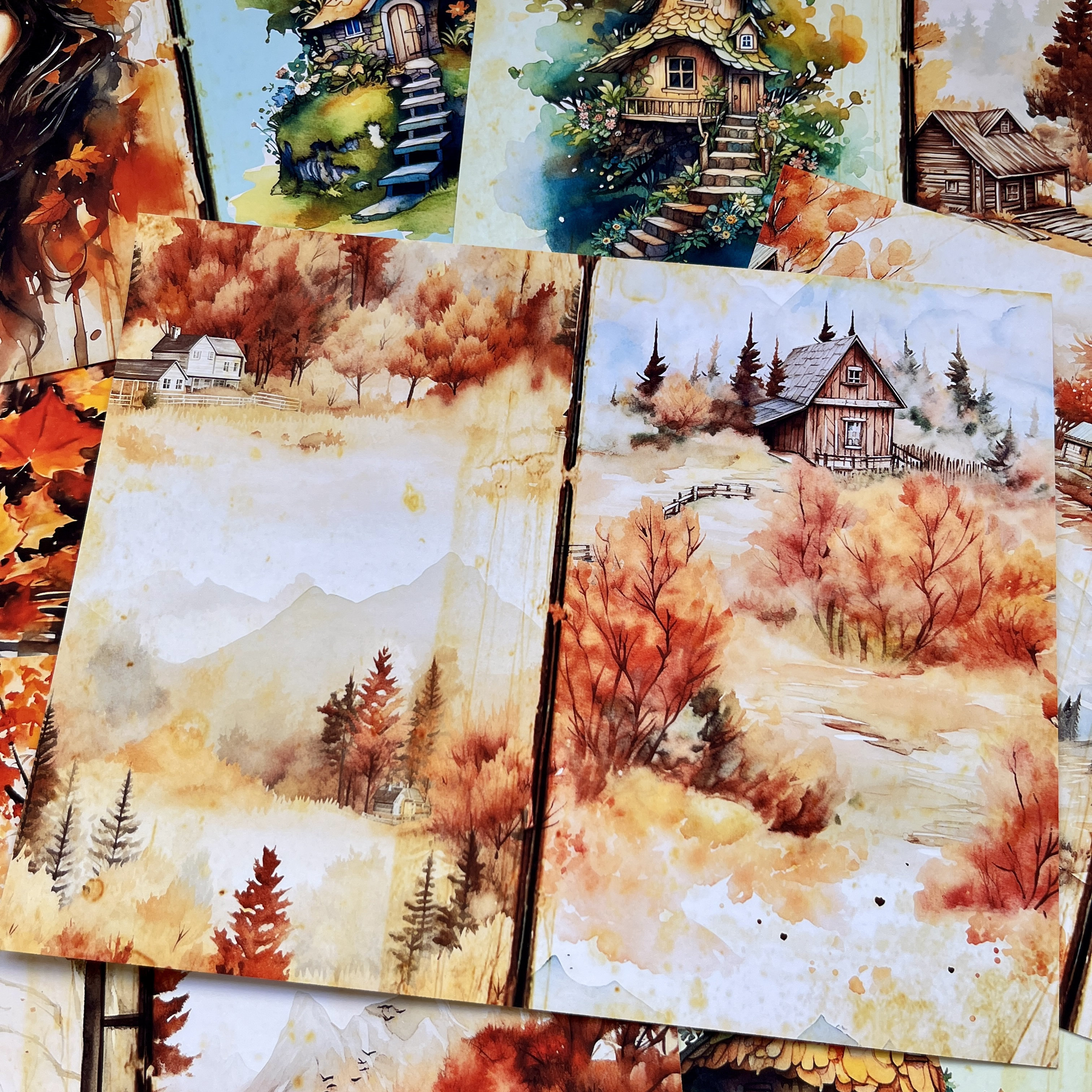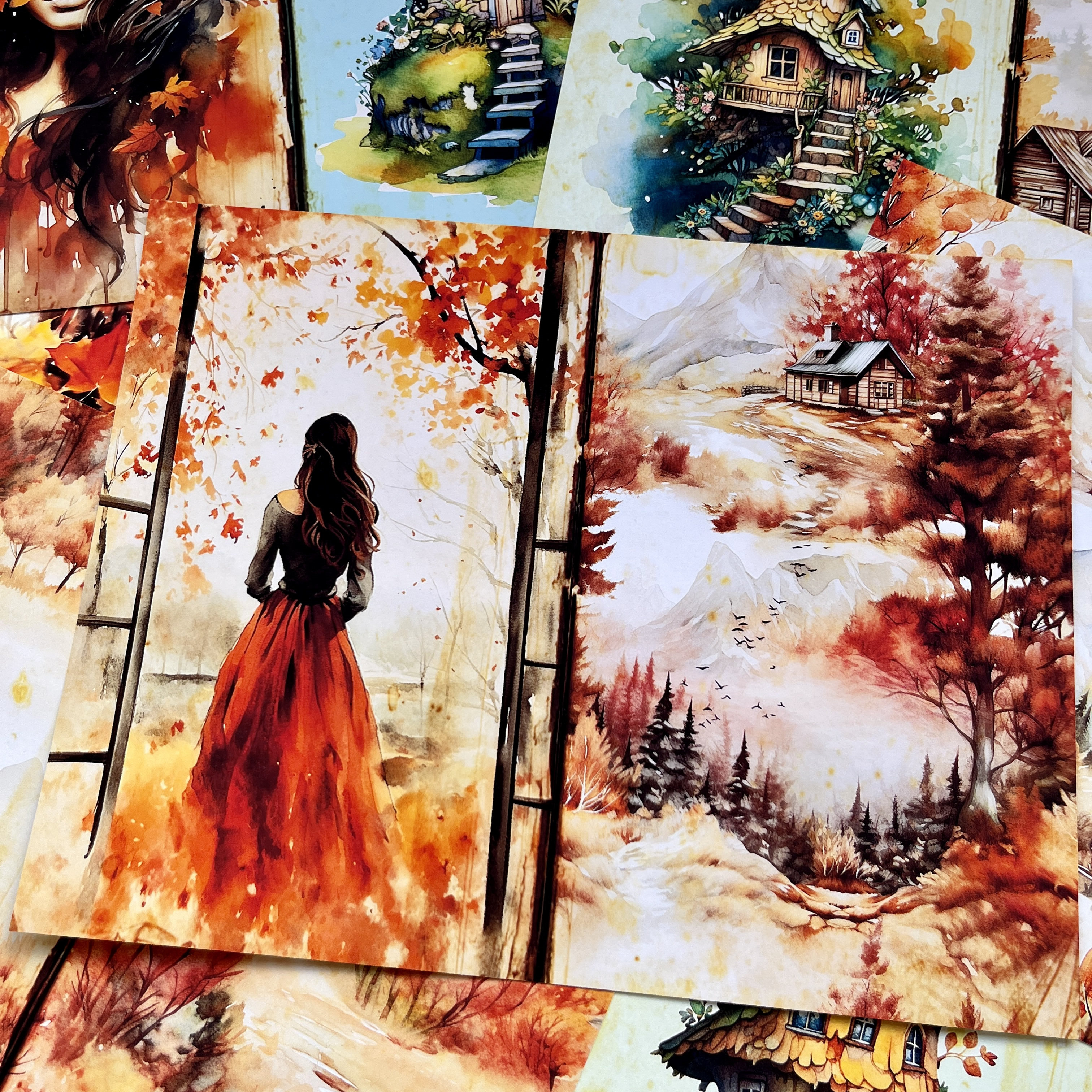 Autumn Countryside Forest Girl Background Paper 14cm / 18cm 8 Sheets