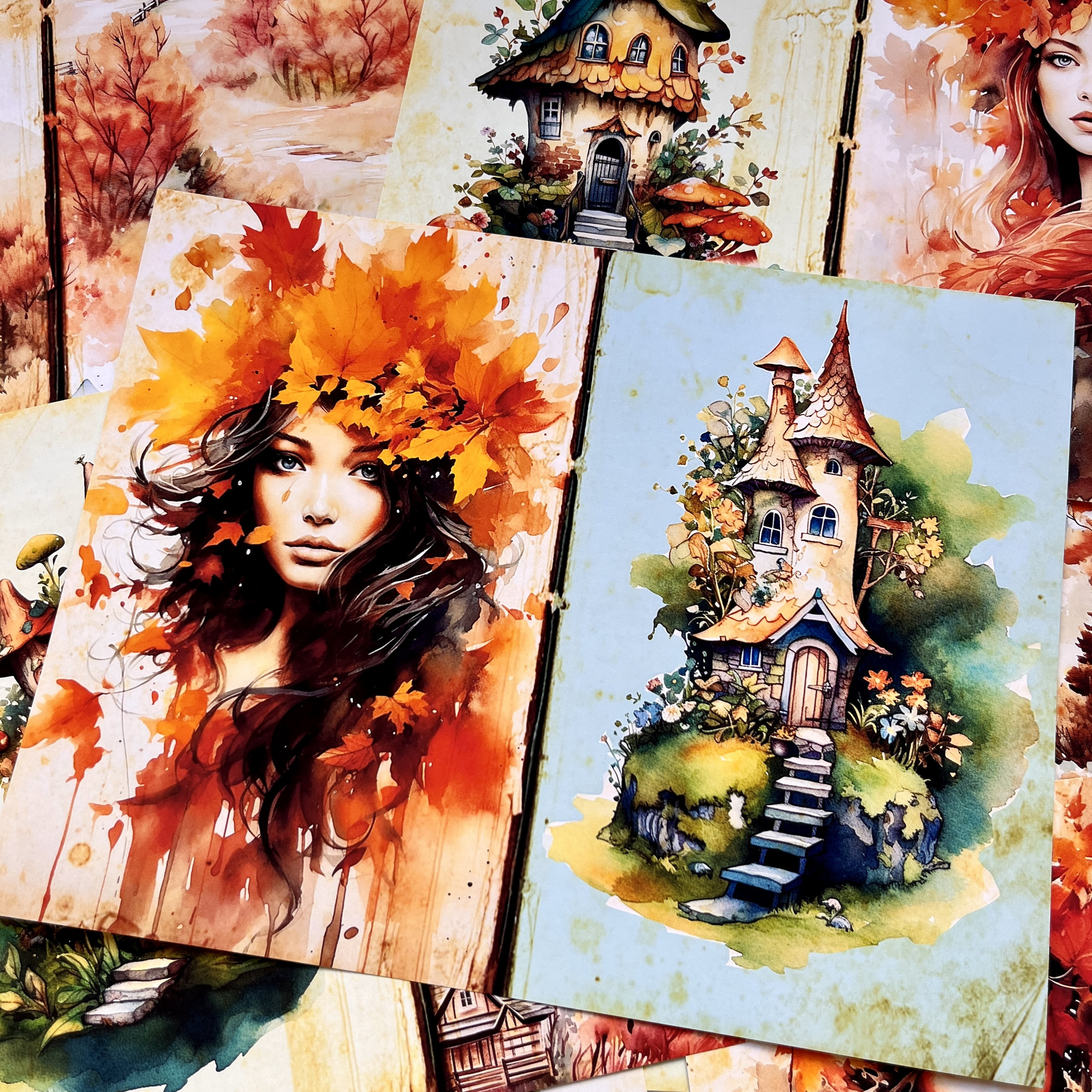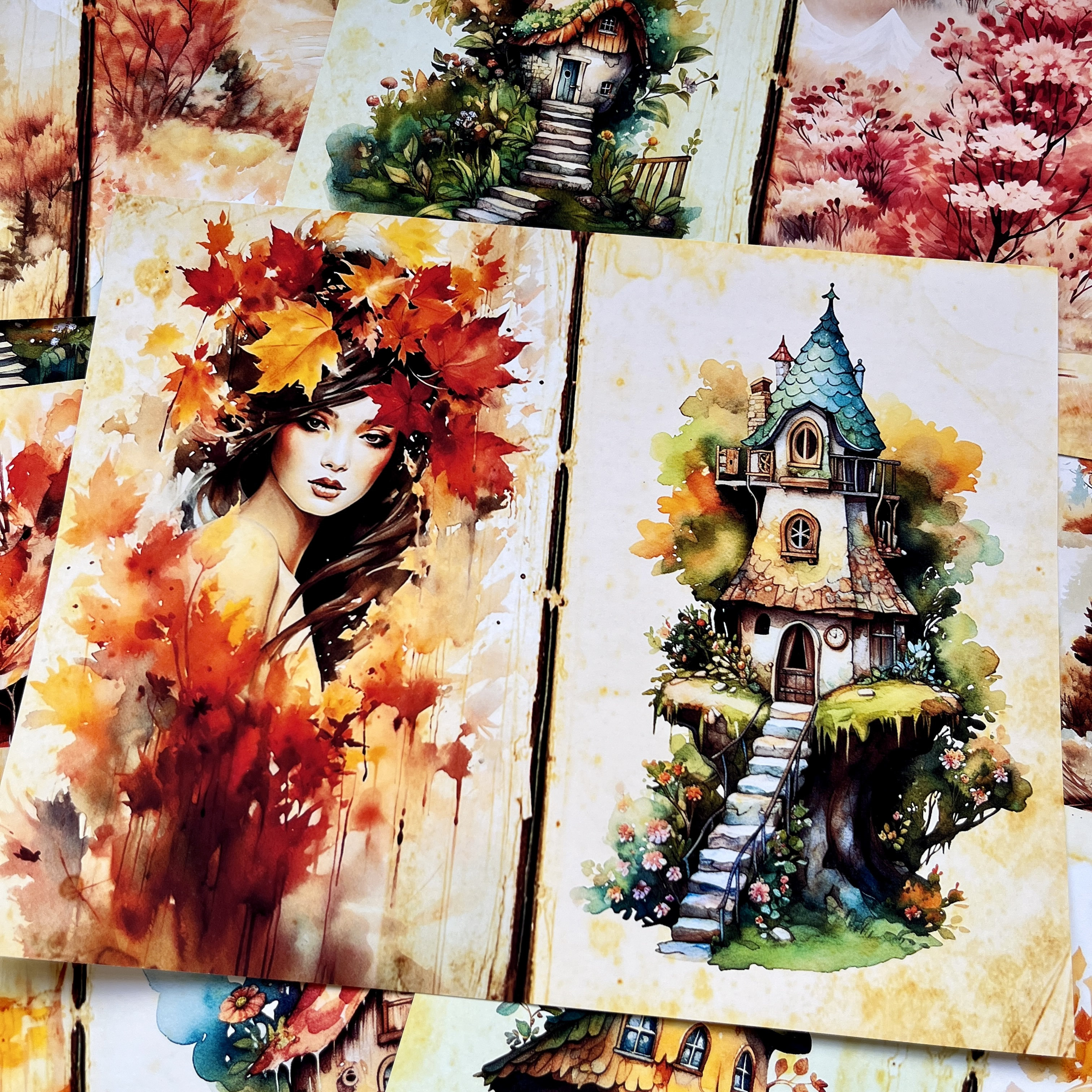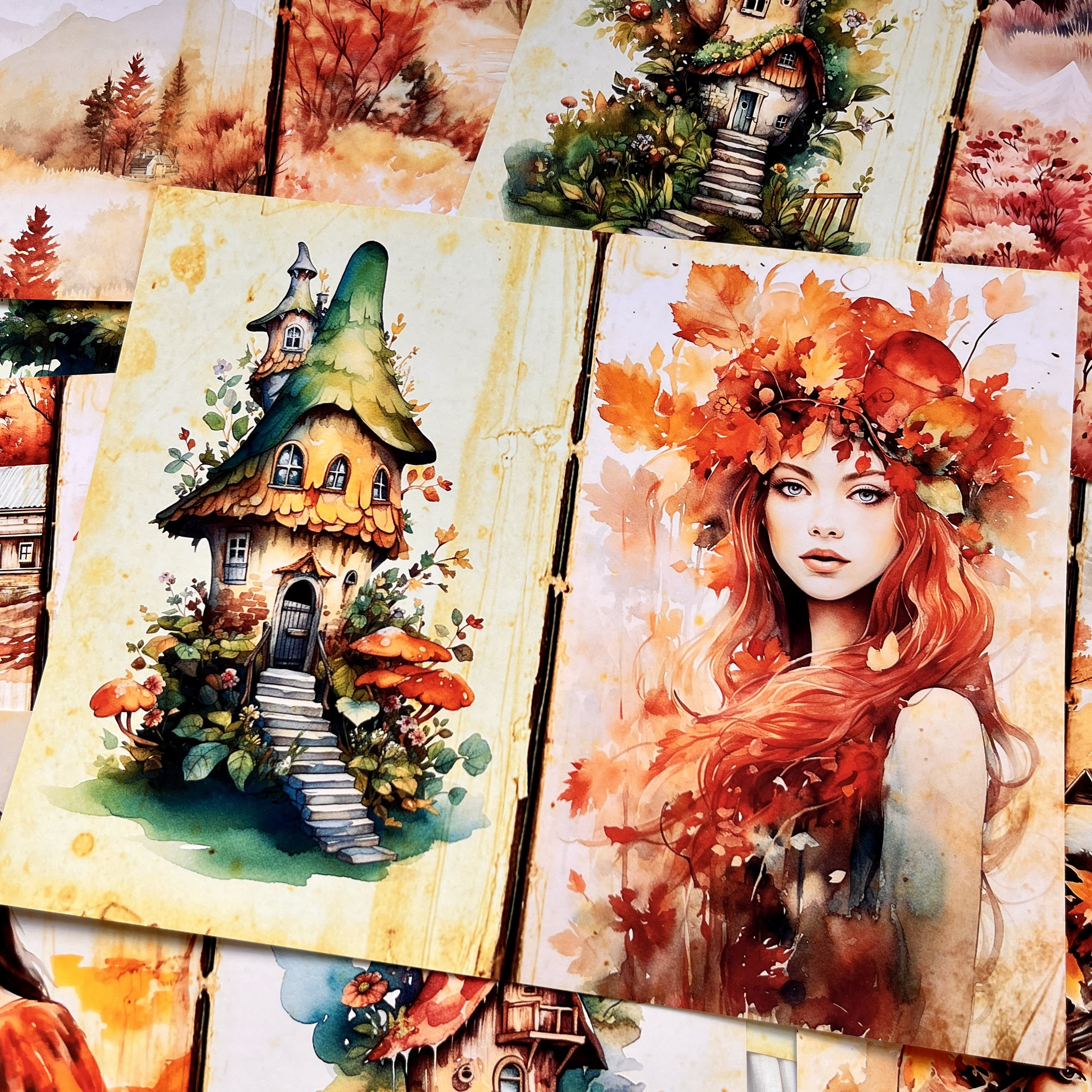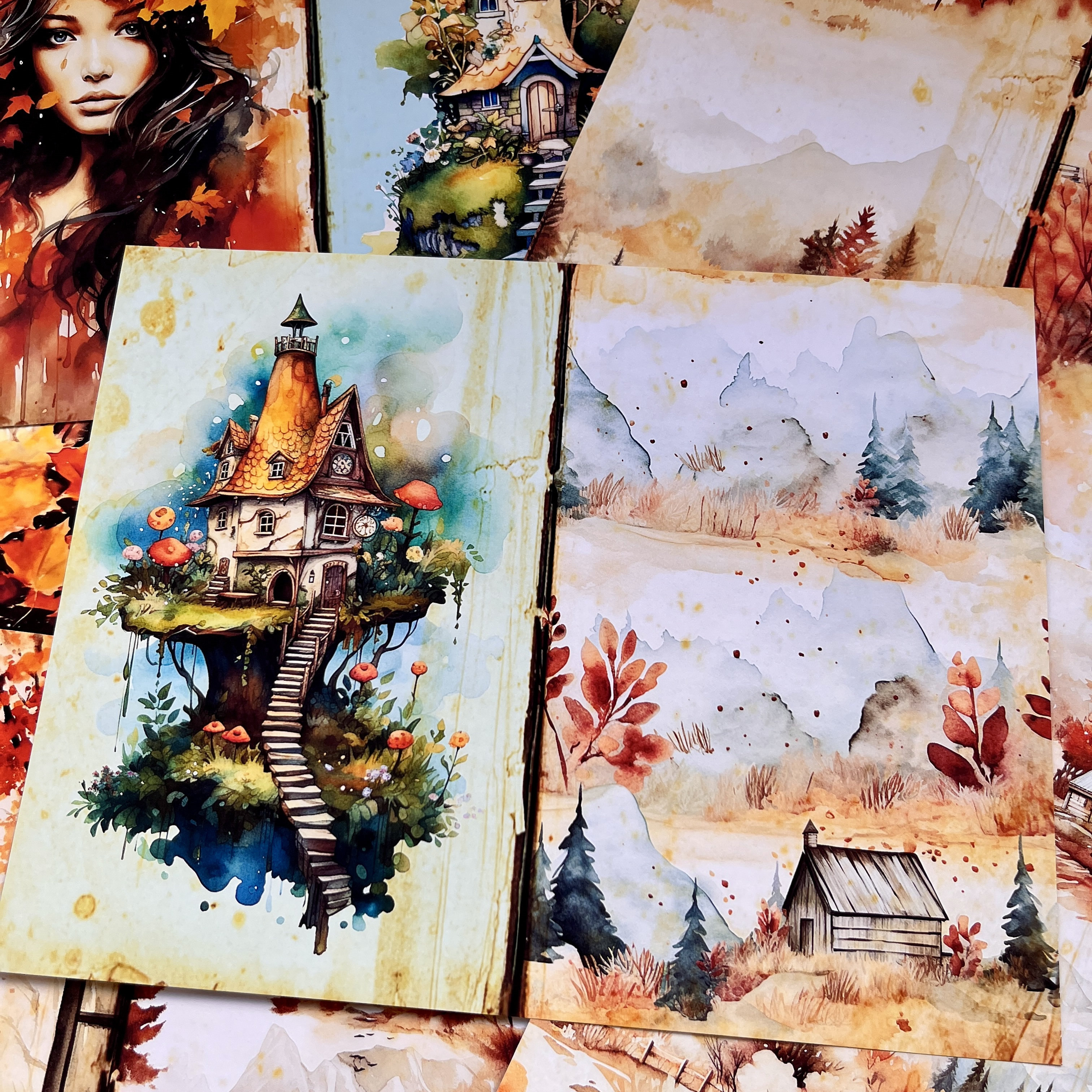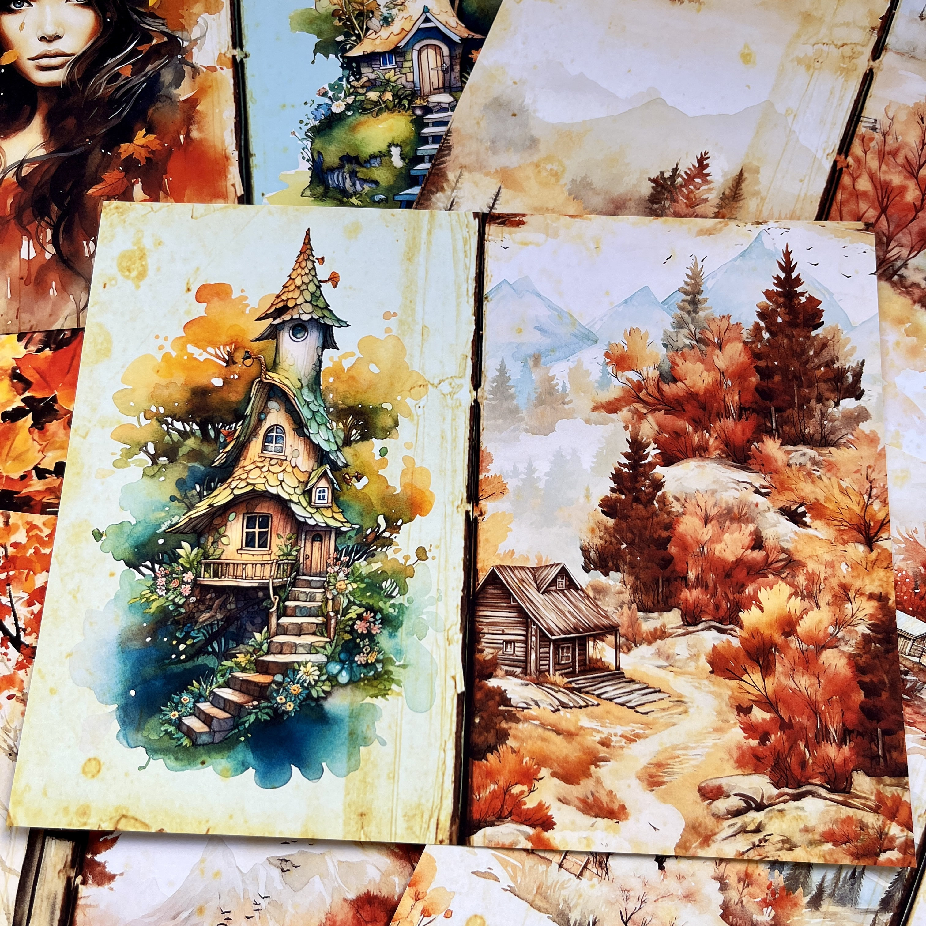 Autumn Countryside Forest Girl Background Paper 14cm / 18cm 8 Sheets