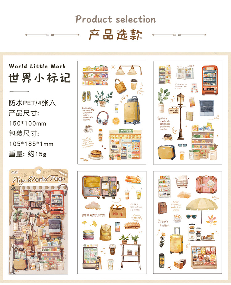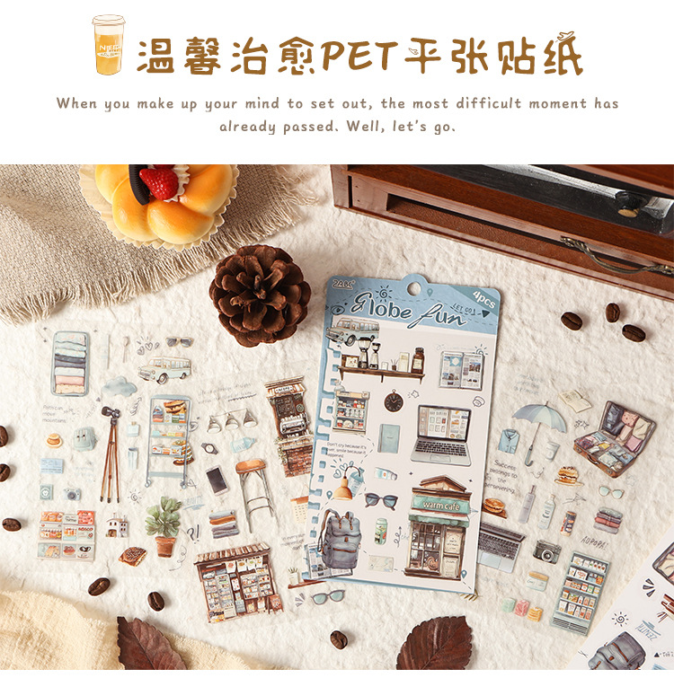 Travel Happiness Series Warm and Healing PET Stickers 4 Sheets 4 Types image 1