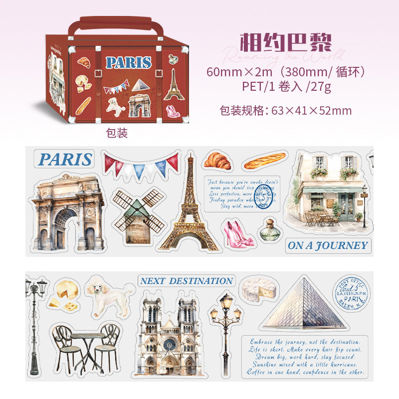 The Roaming the World Series by A Beautiful Day captures the spirit of wanderlust with delicate hand-painted scenes of breezy cities and charming streets. Printed on clear PET tape, these travel-inspired designs are perfect for adding a dreamy, globe-trotting flair to journals, planners, and creative collages. Each piece evokes the feeling of roaming freely and collecting memories from every corner of the world.