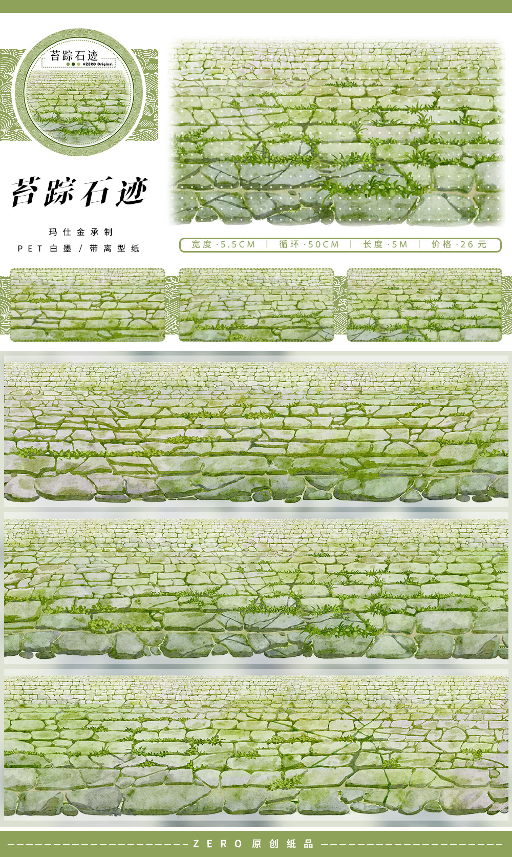 Brick Stone Ground and wall Ancient Style PET Tape 8 Styles