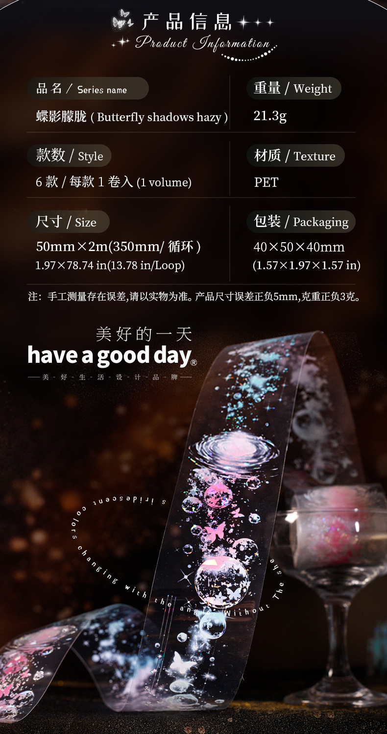 Butterfly Shadow Series PET Tape 6 Styles 5cm x 2m