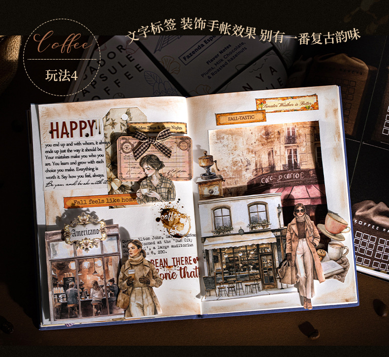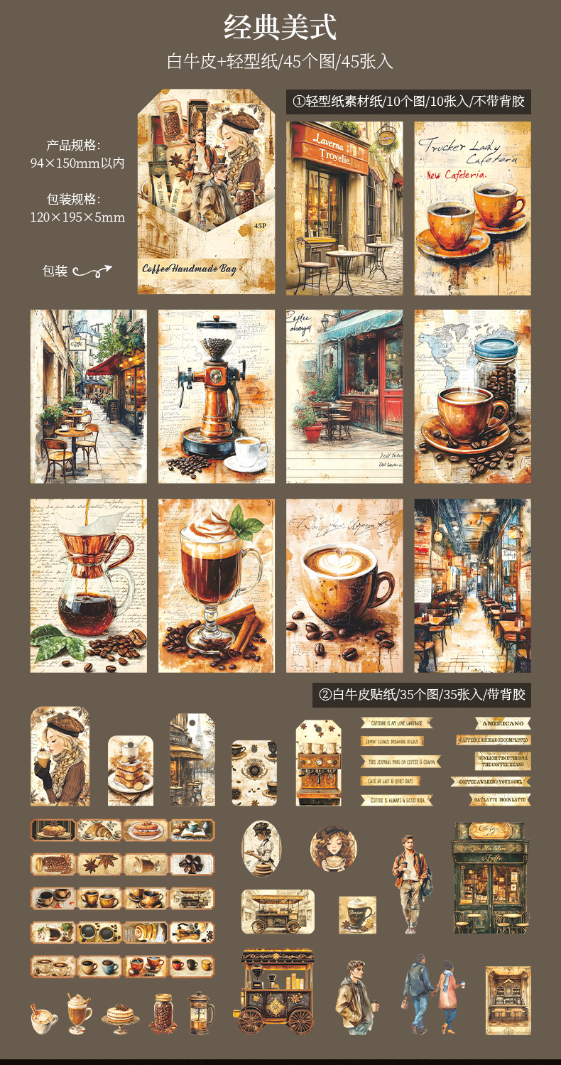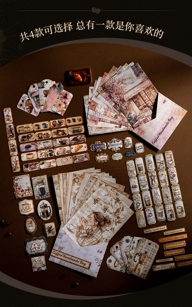 Coffee journal series cretro material paper pack 45 sheets 4 designs
