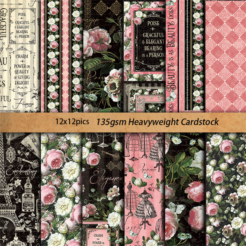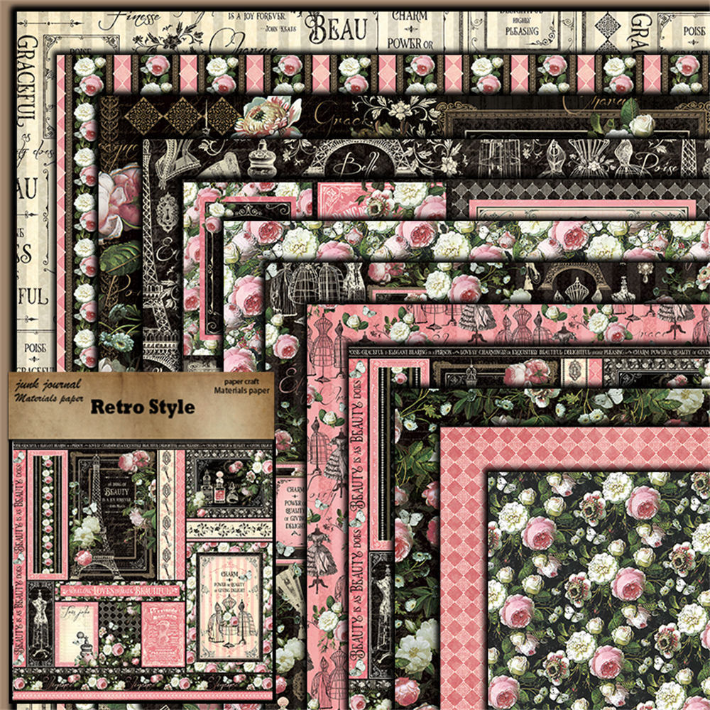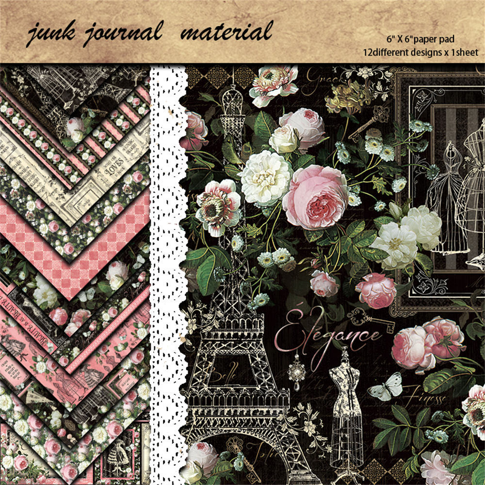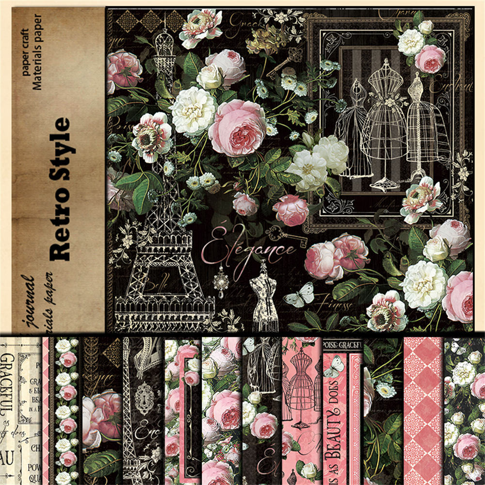 Retro elegant European and American collage material paper 12 Sheets
