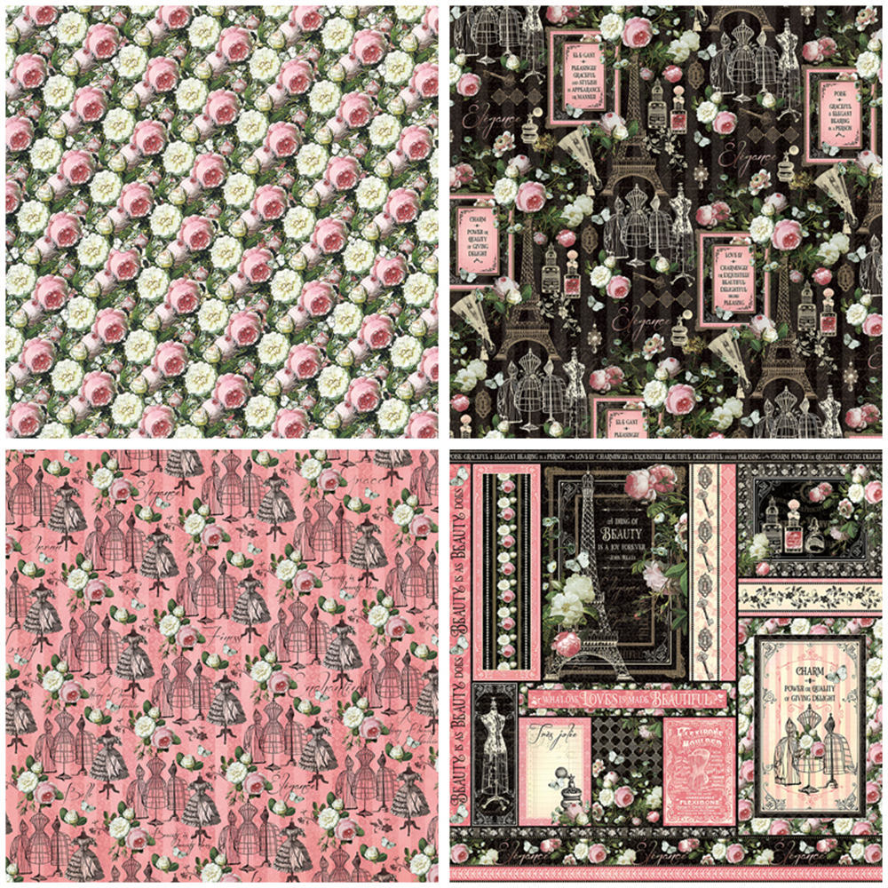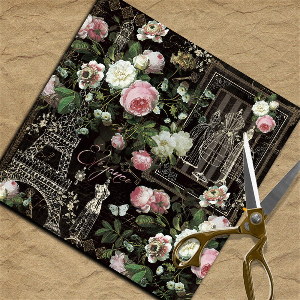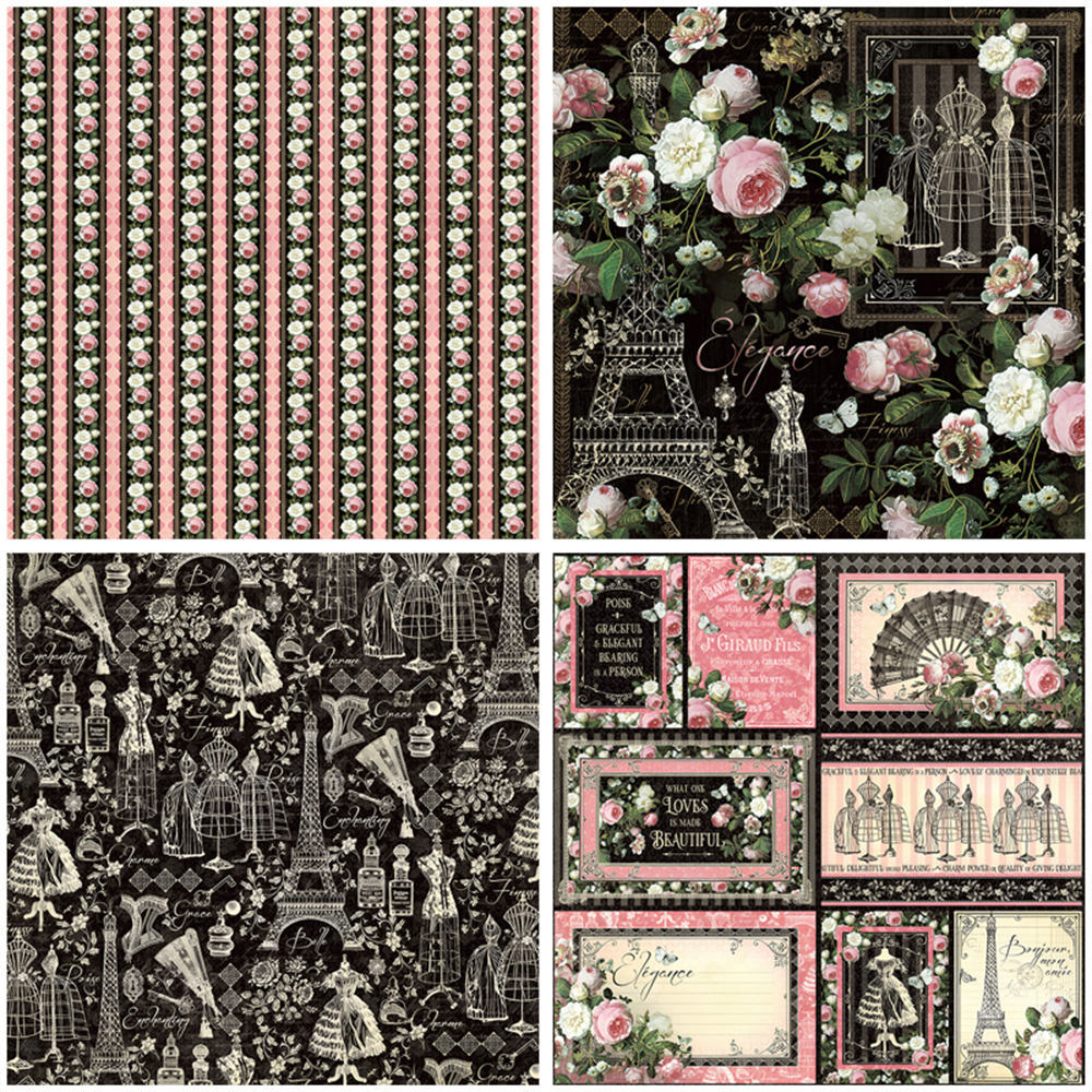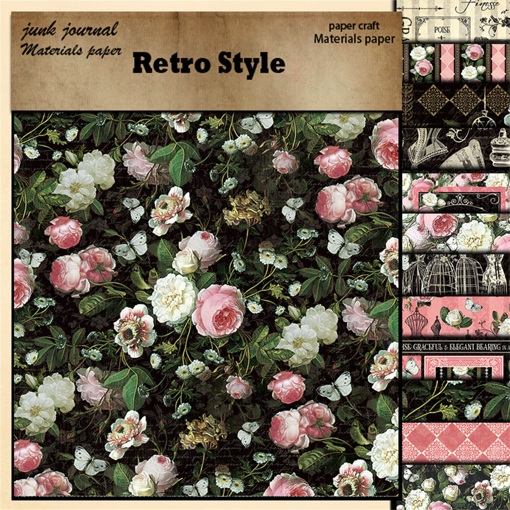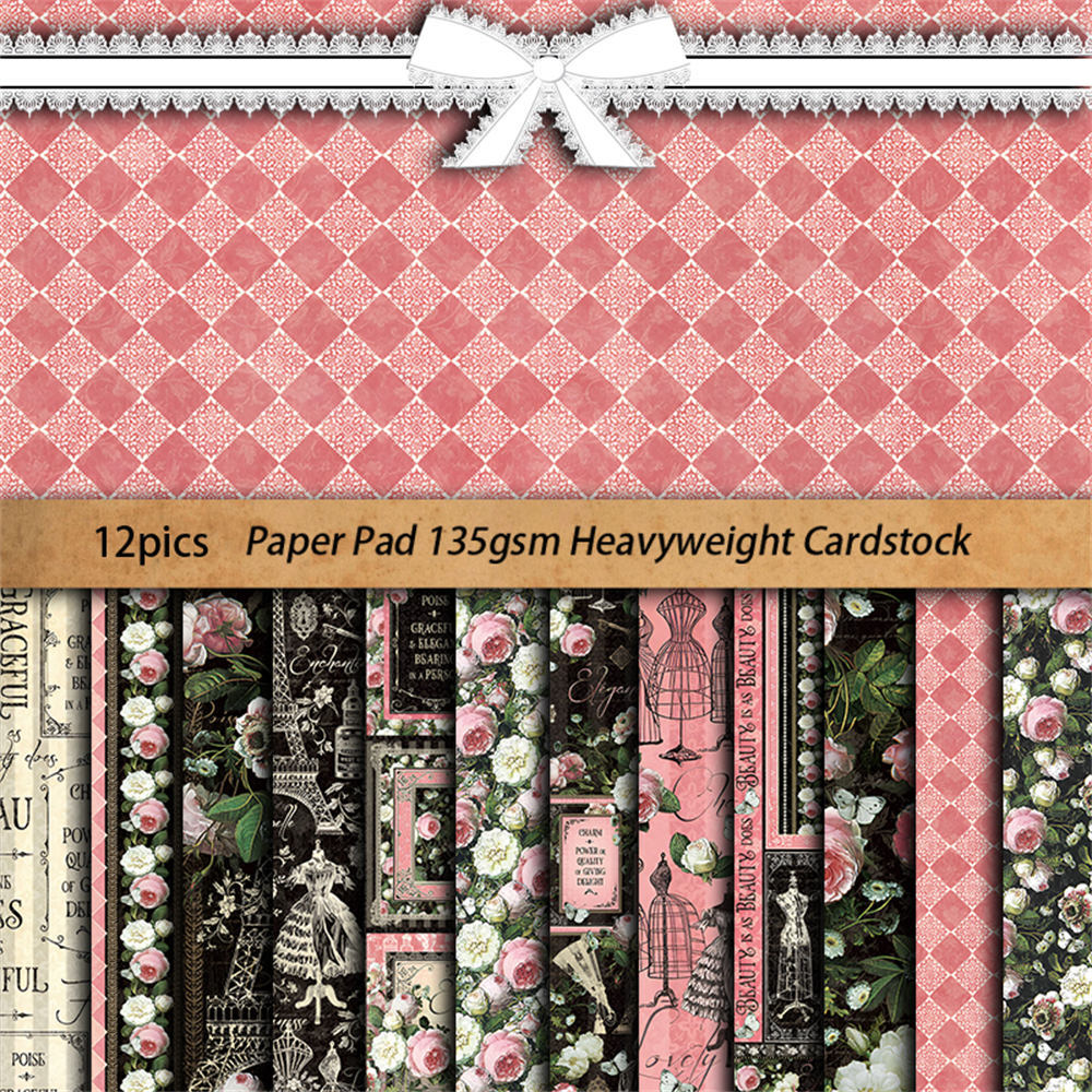Retro elegant European and American collage material paper 12 Sheets
