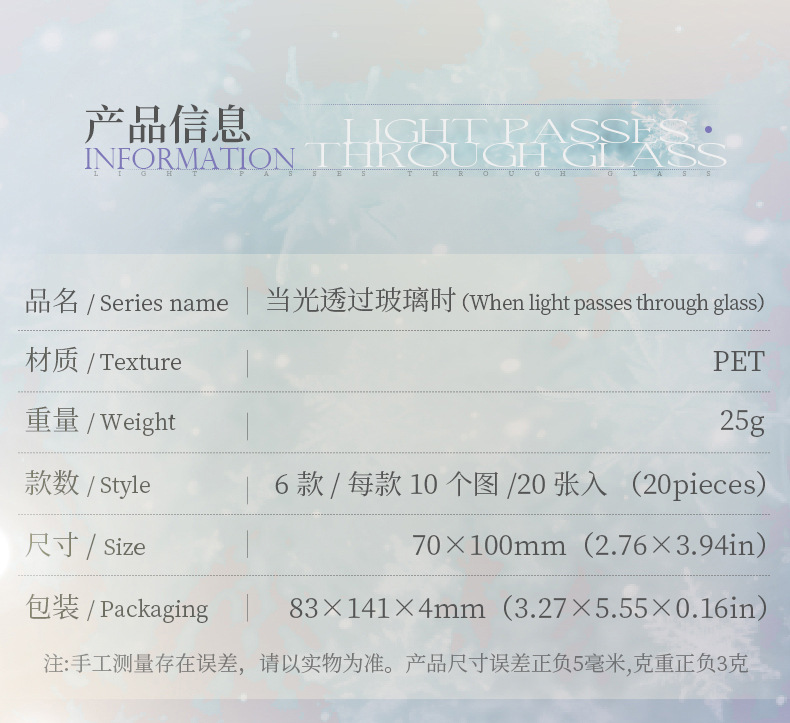 Light Shines Through Glass Series PET Stickers 20 Pcs 6 Styles image 0