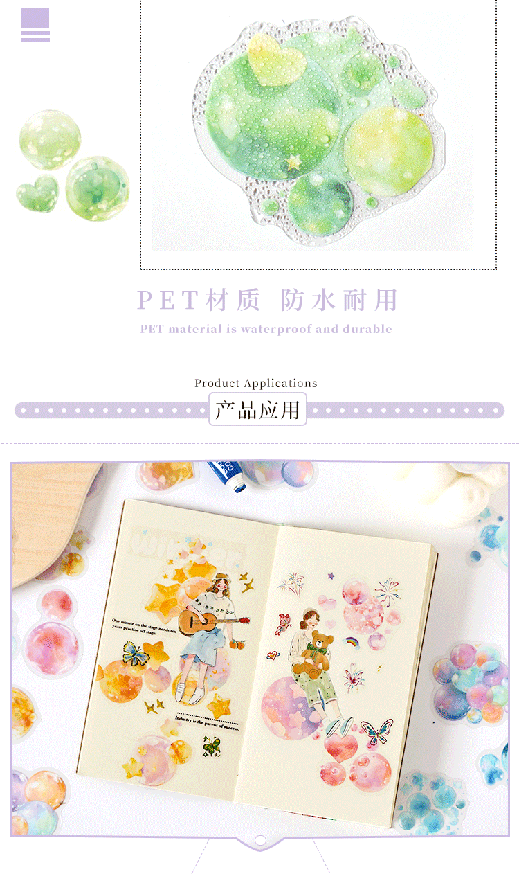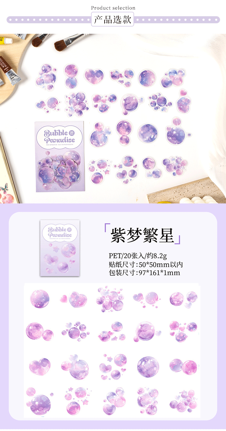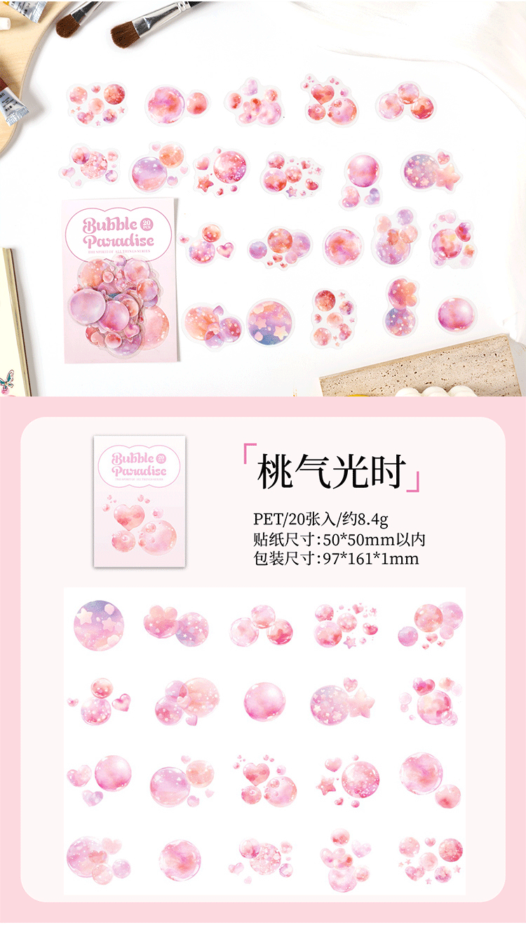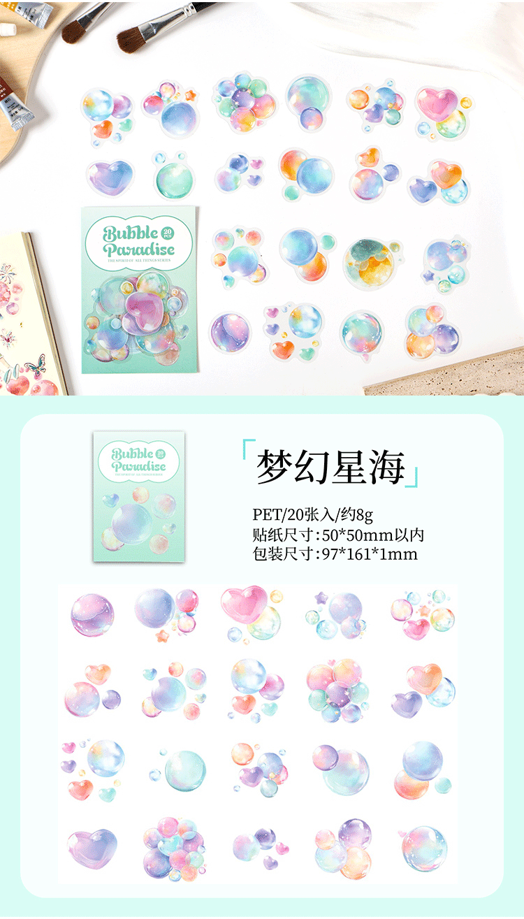 Dream Dance Bubble Series PET Sticker Pack 20 Sheets 6 Types image 1