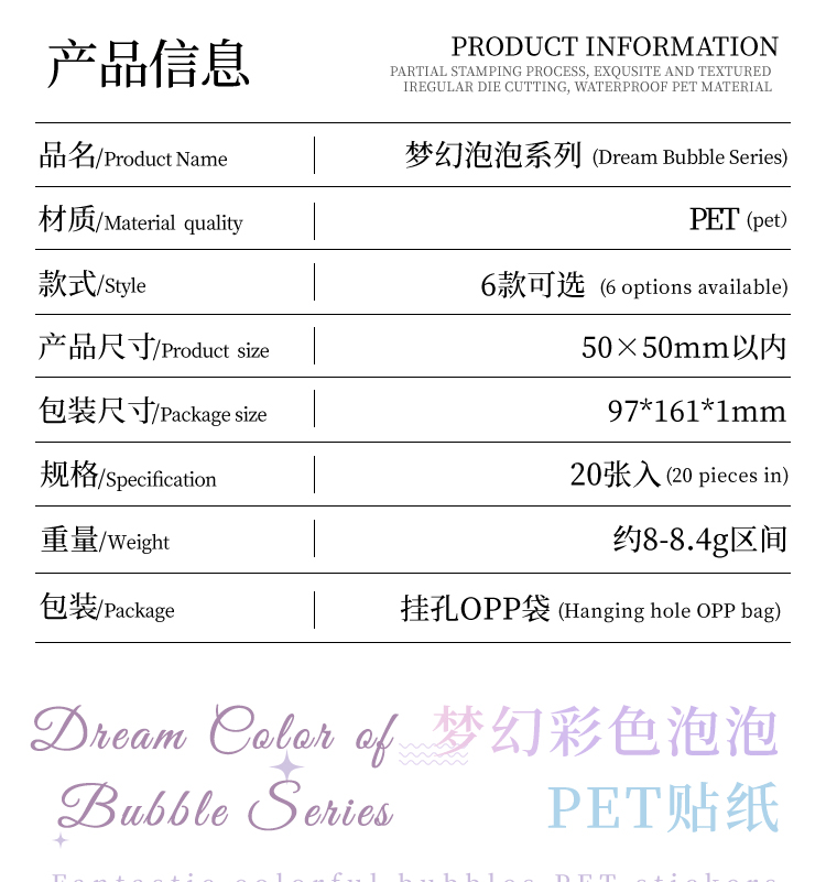 Dream Dance Bubble Series PET Sticker Pack 20 Sheets