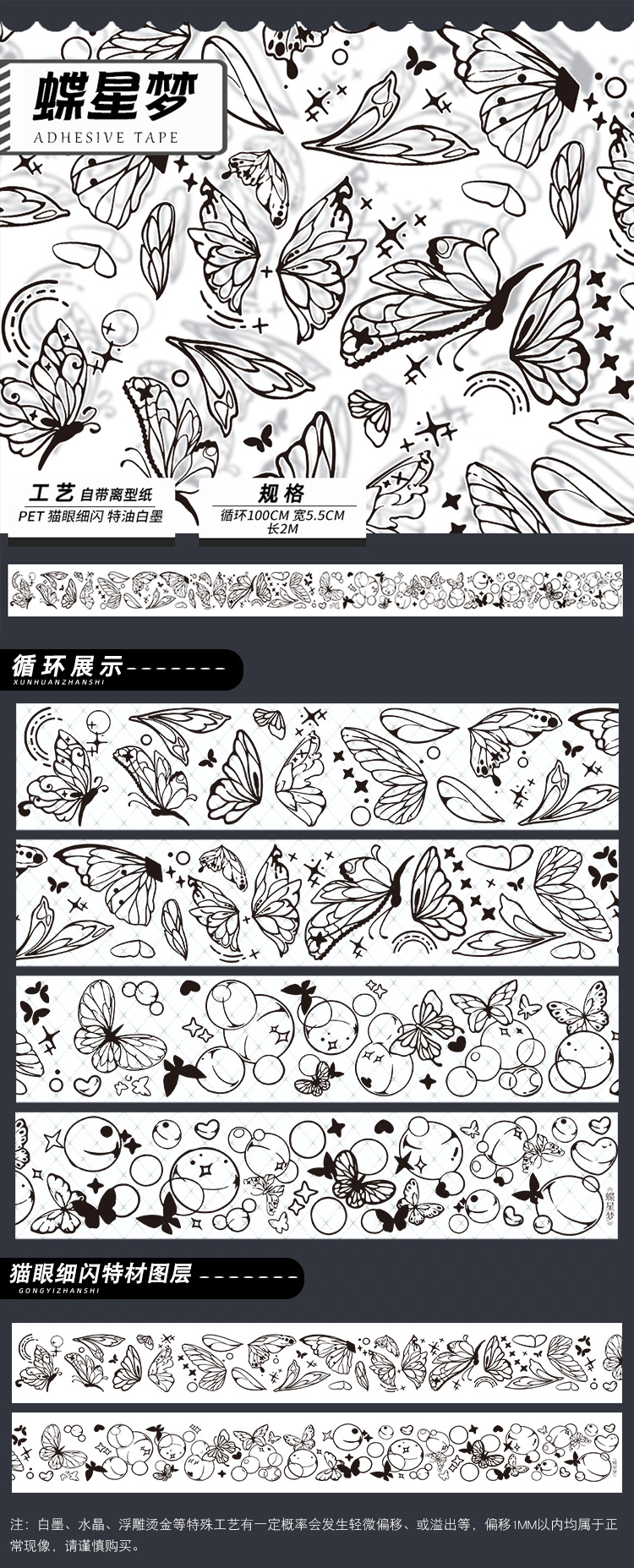 Flow Hanf Hand Konto Band Blume Katze Auge feine Flash wasserdichte Aufkleber PET Collage Dekoration Material Hand Konto Collage Aufkleber