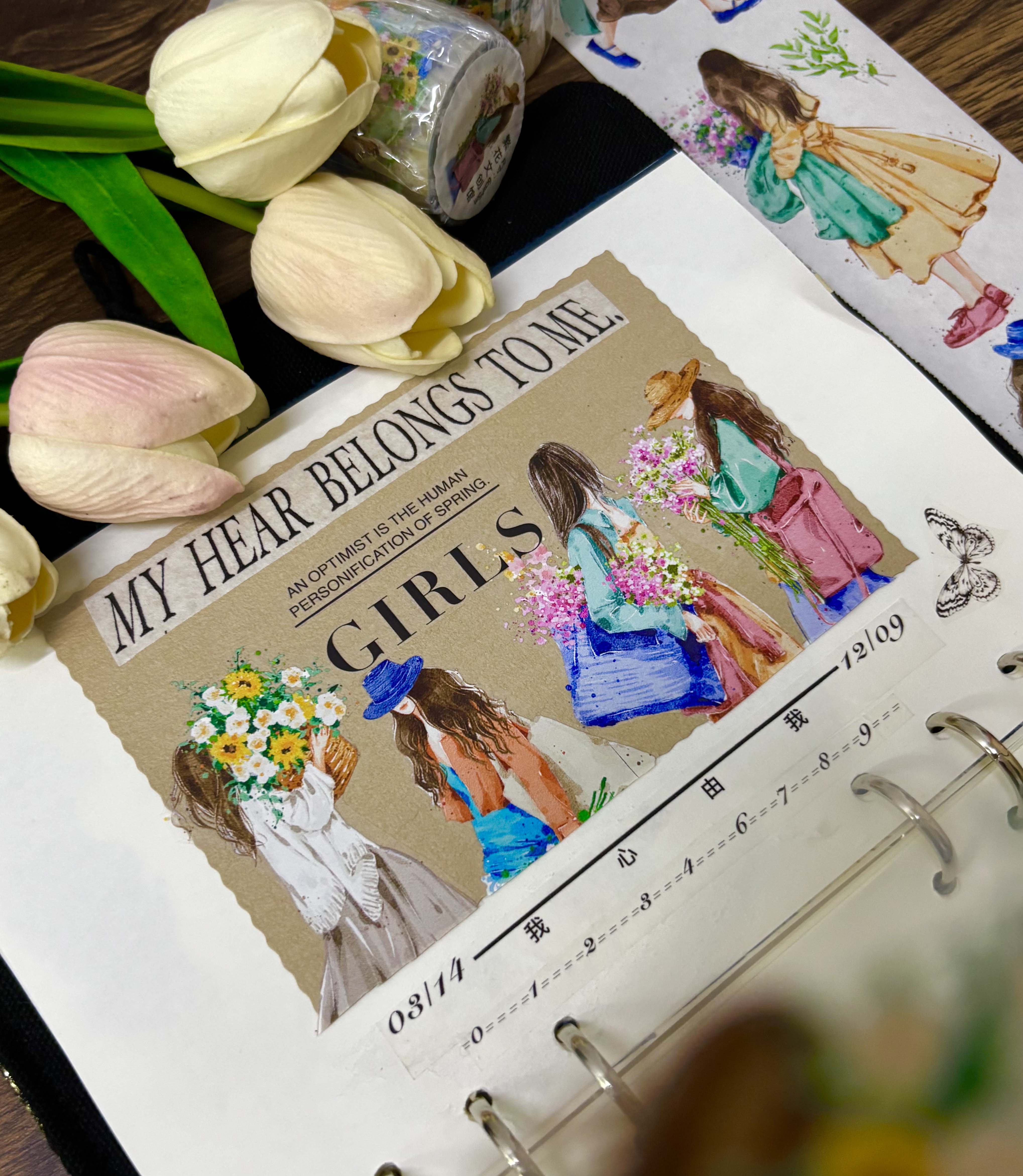 Flower Dream Retro Character PET Tape 6cm / 1m