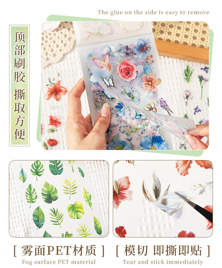 Flower Theme Collage Matte Double layer PET Sticker Book 4 Types 20 Sheets