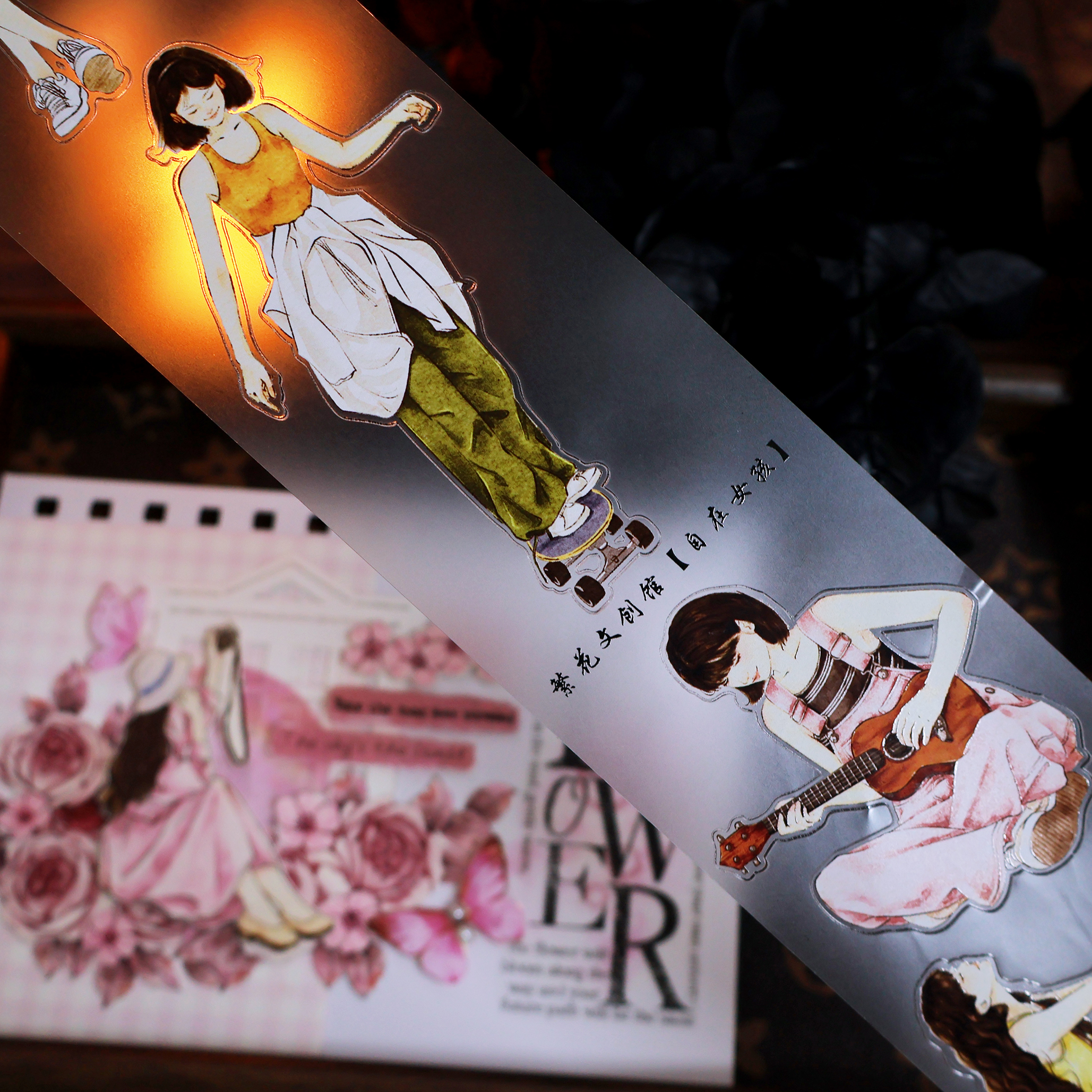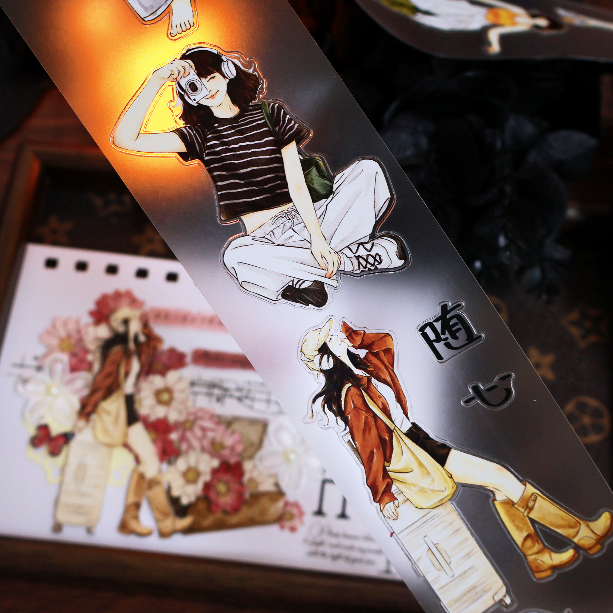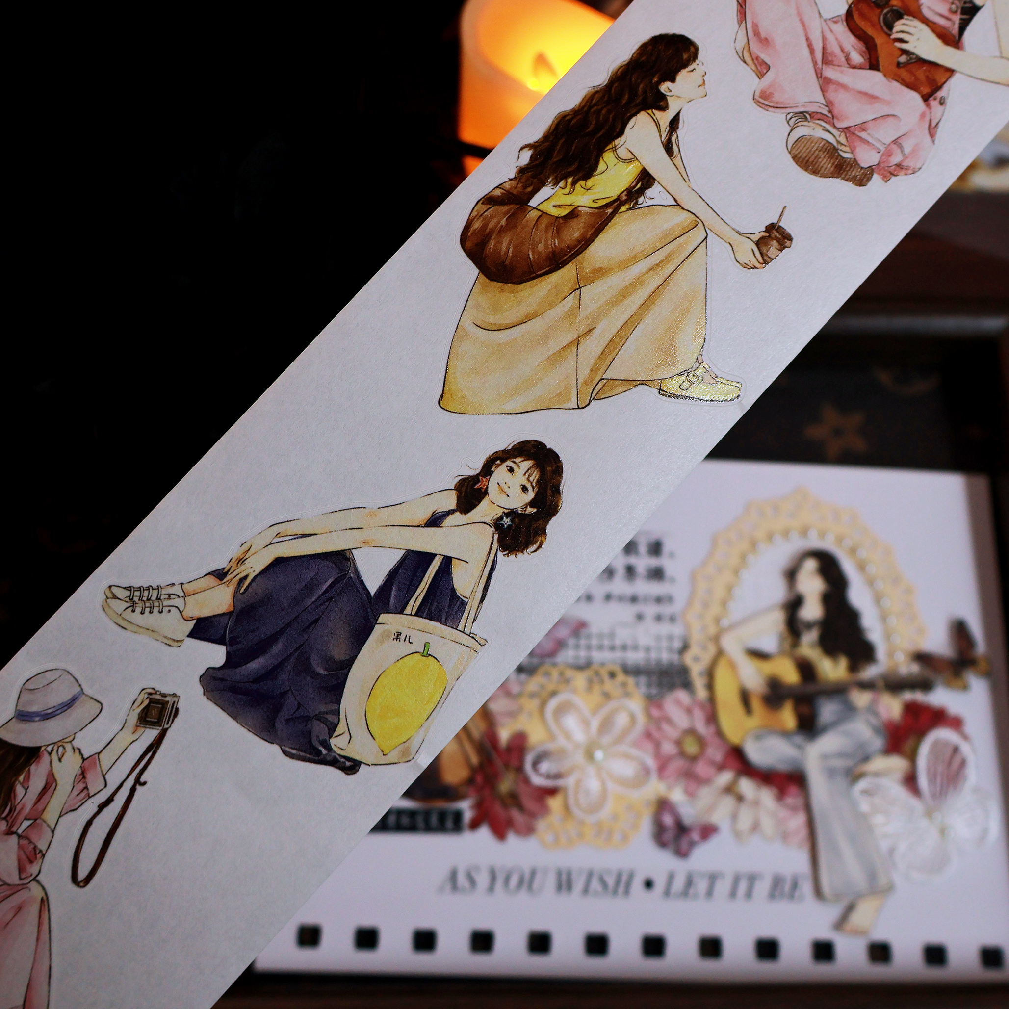 Girl Relaxed retro characters die cut PET Tape 6cm / 1m