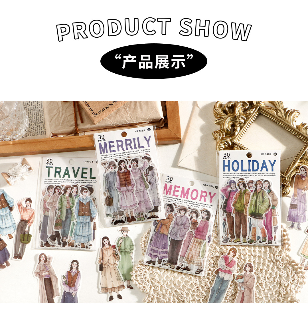 Japanese character paper sticker pack 4 Types 30 Pcs