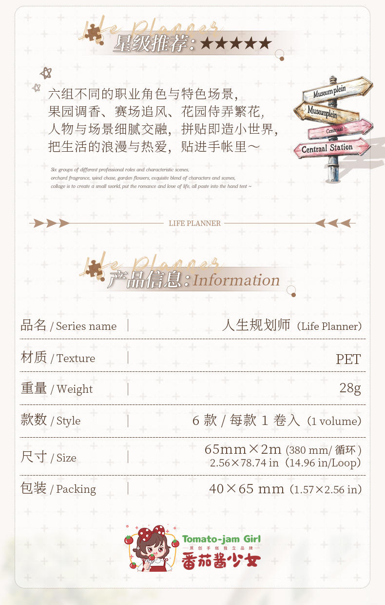 Life Planner Series Die cut PET Tape 6 Types 6 5cm 2m image 1