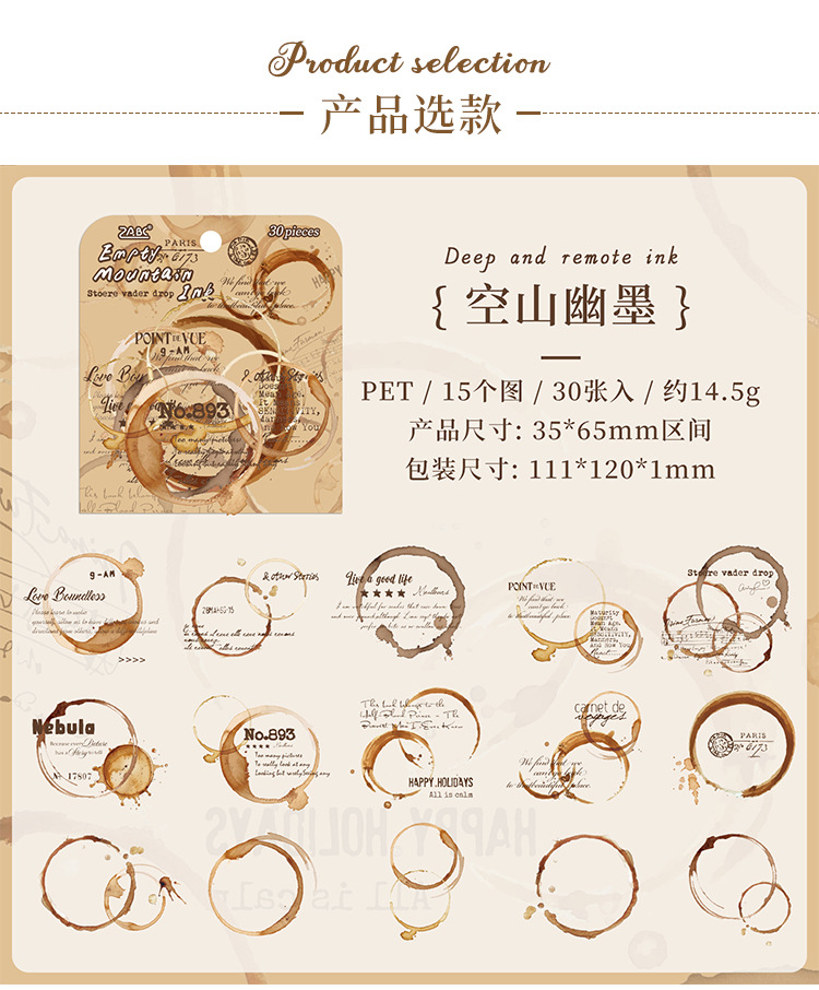 Misty Rain and Flowing Light Series PET Stickers 6 Types 30 Pcs image 0