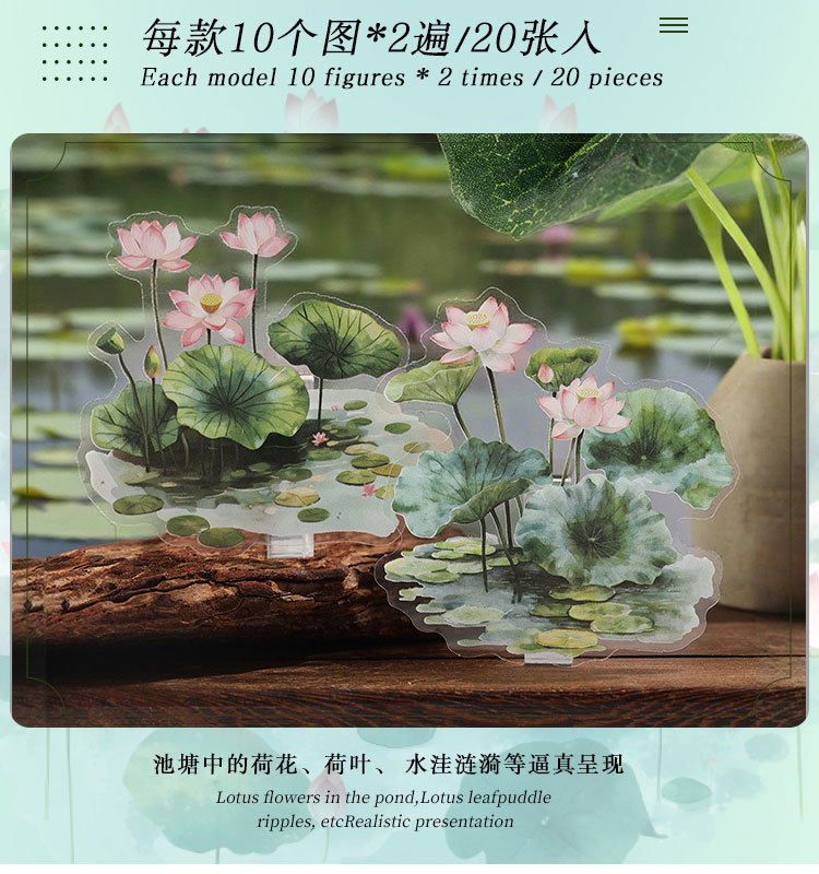 Painting Plant Pond Series PET Sticker Pack 6 Types 20 Pcs