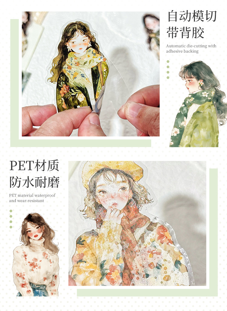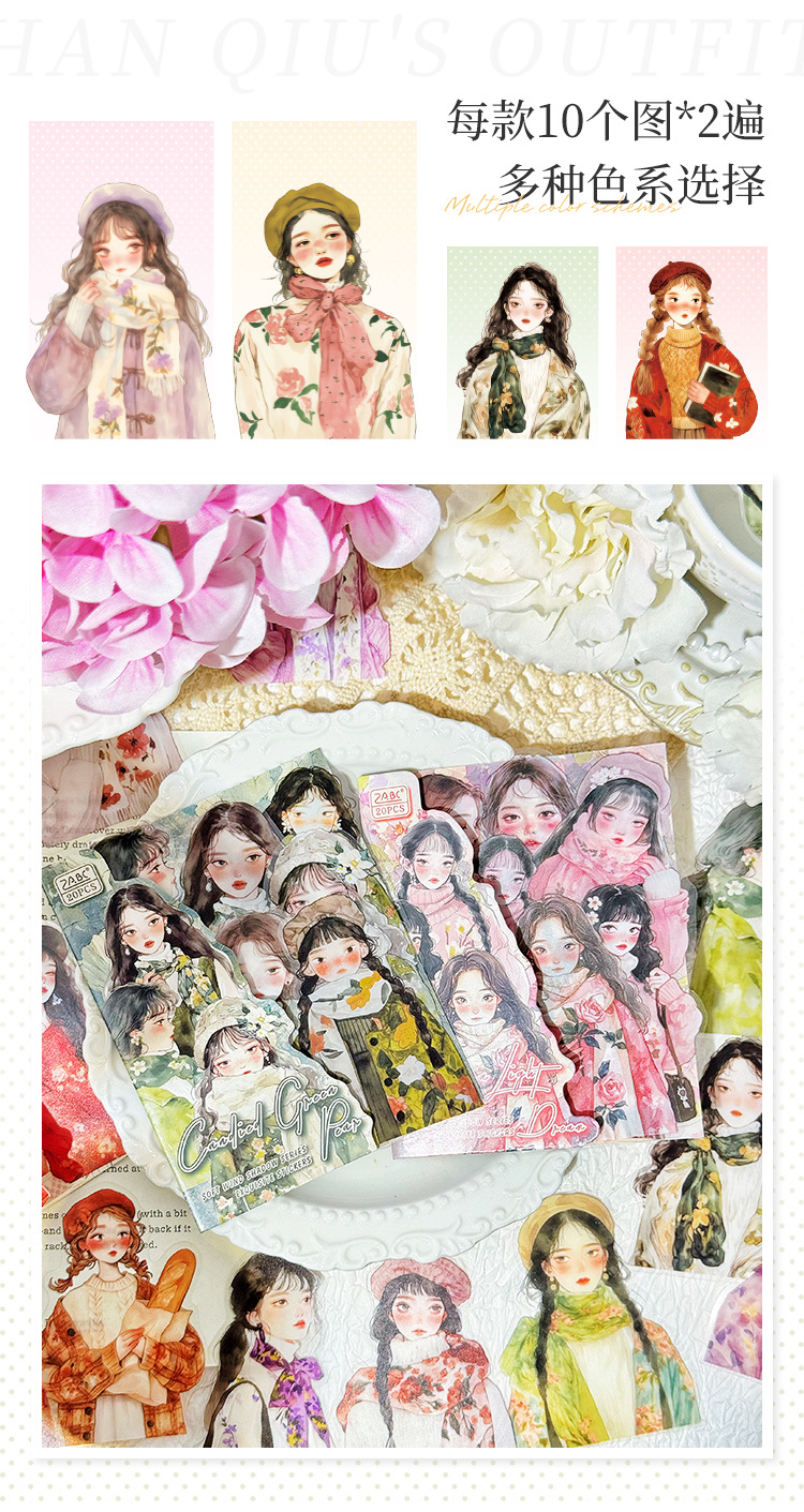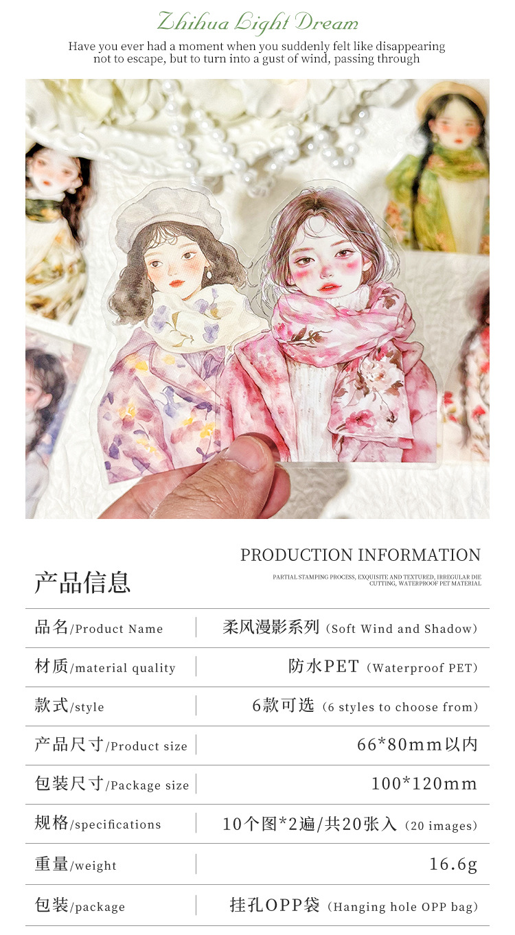 Soft Wind Shadow Series Character PET Stickers 6 Types 20 Pcs