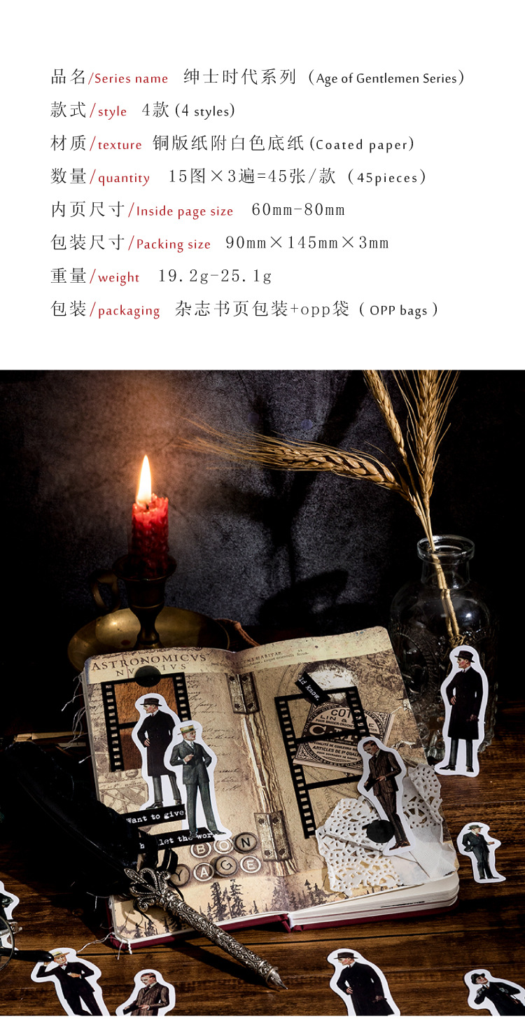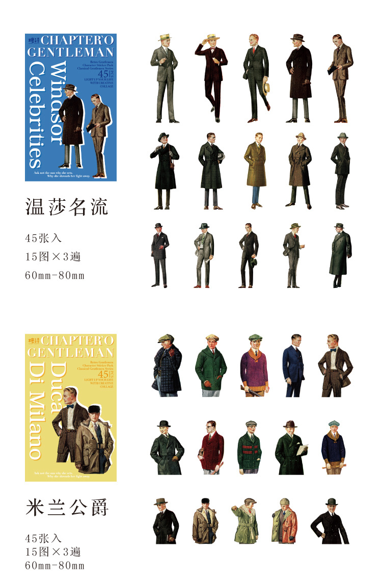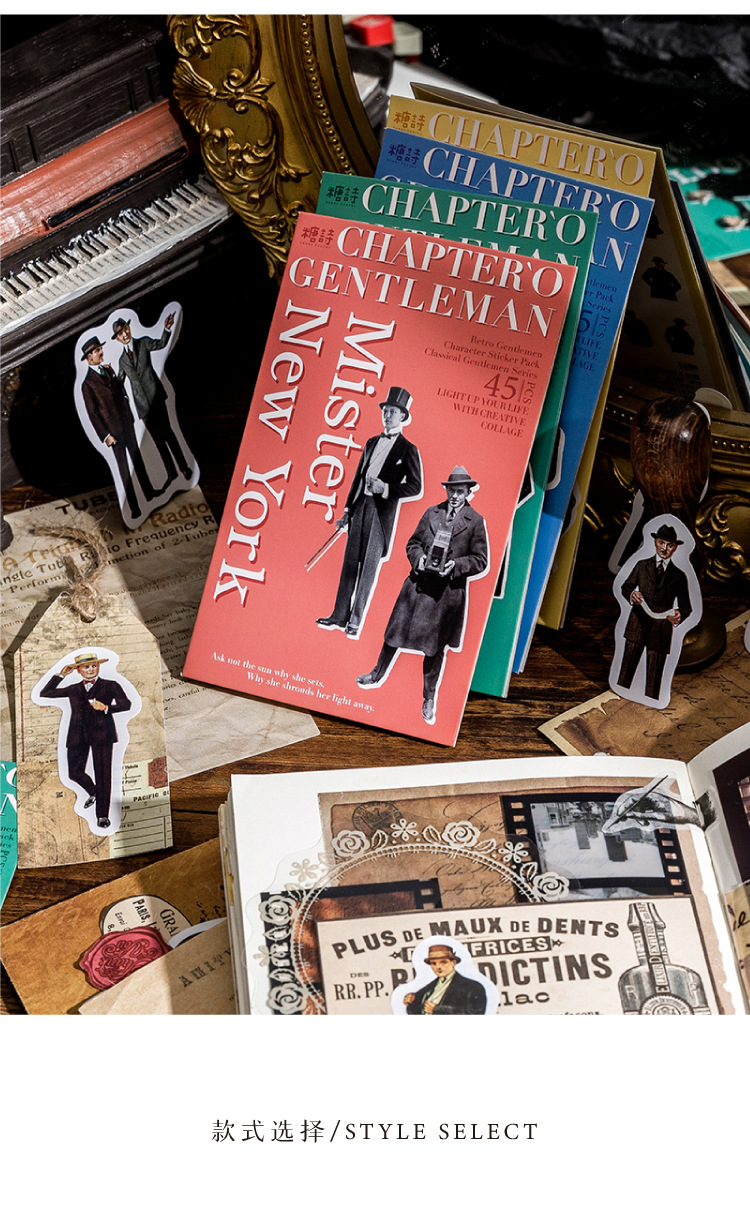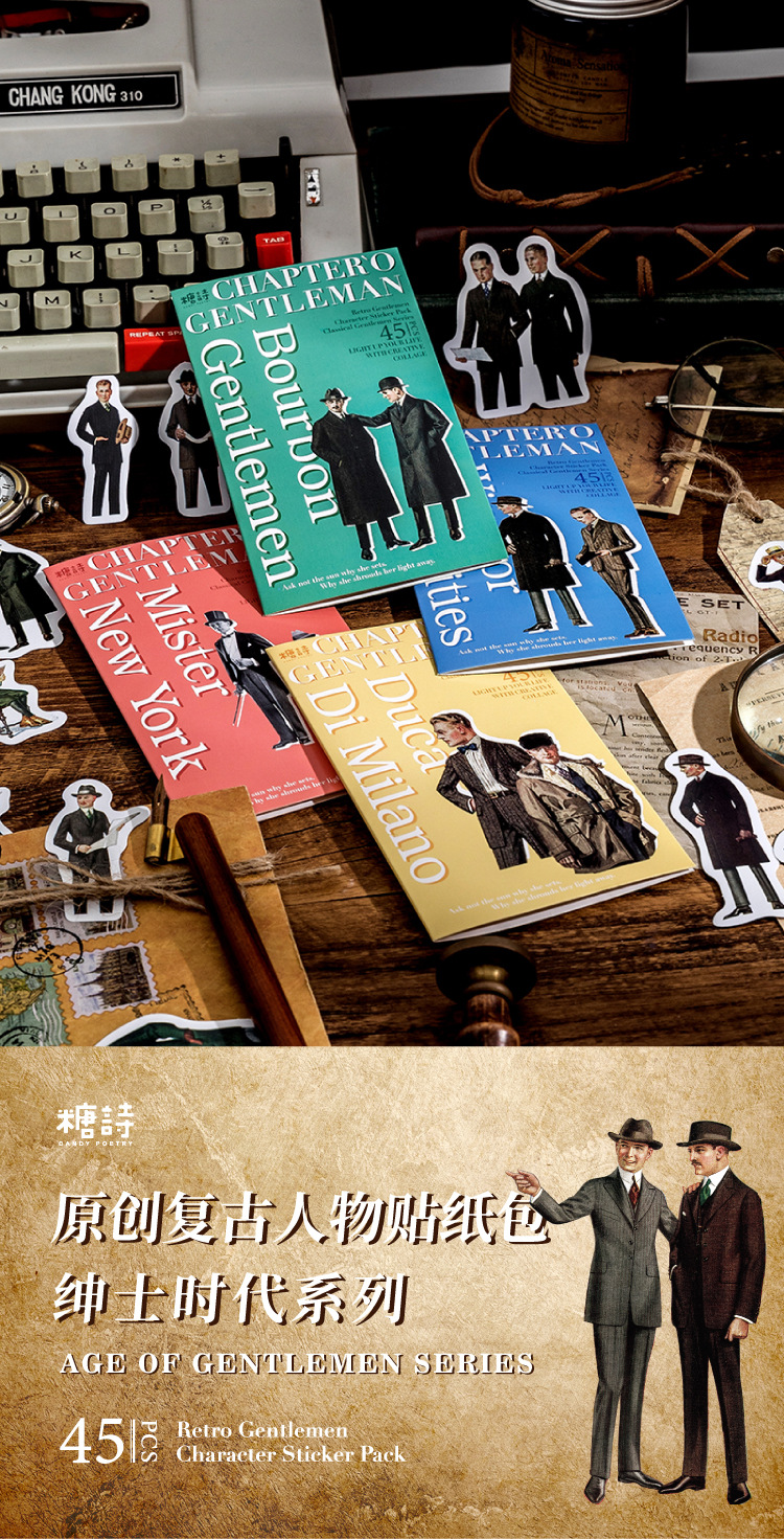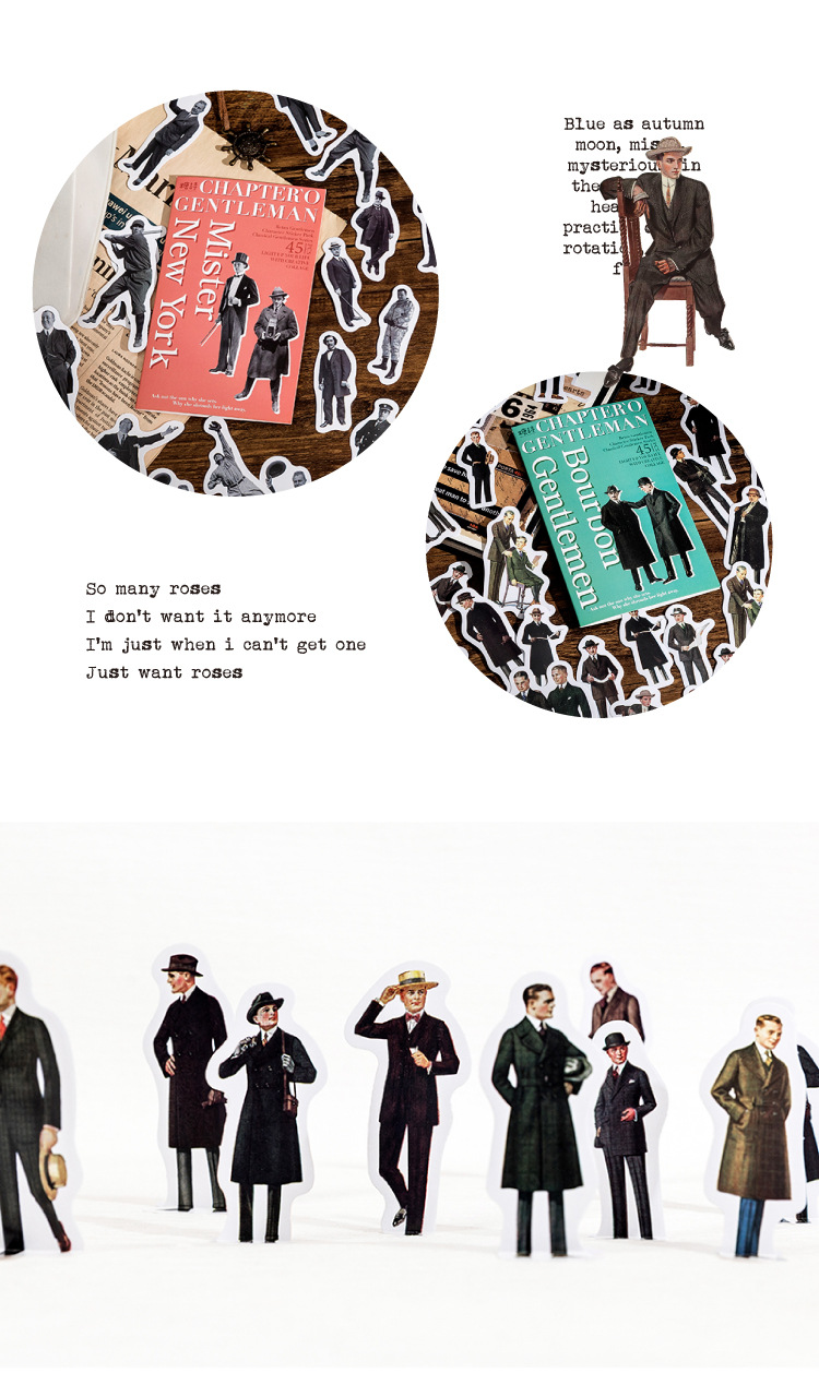 Sugar Poem Retro Gentleman Era Sticker Pack, 4 Pcs - ViktaShop
