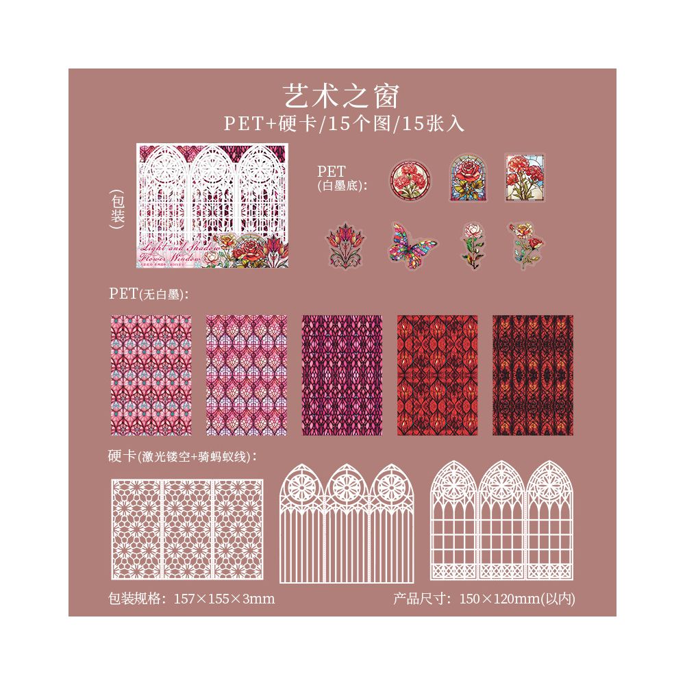 Window Frame Light and Shadow PET Hard Card Pack 6 Styles 15 Pcs