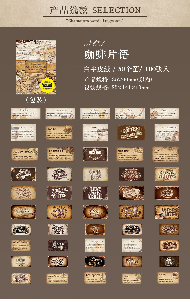 Word Fragment Series Large Retro English Paper 4 Types image 1
