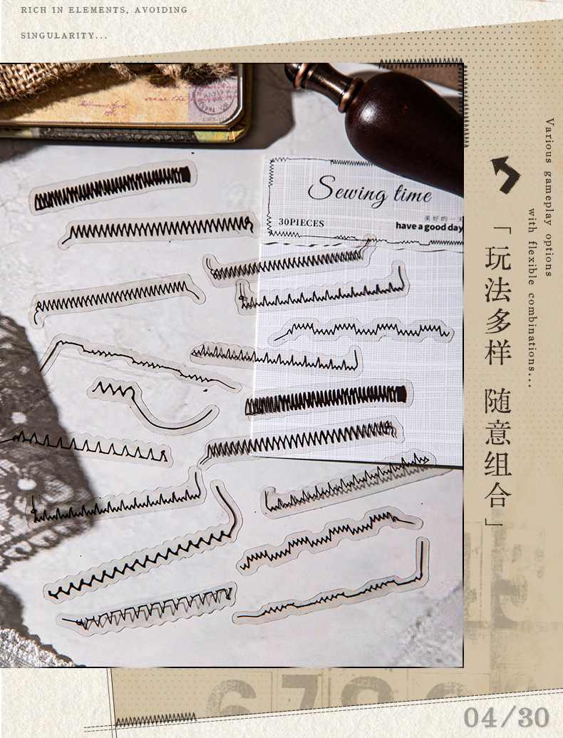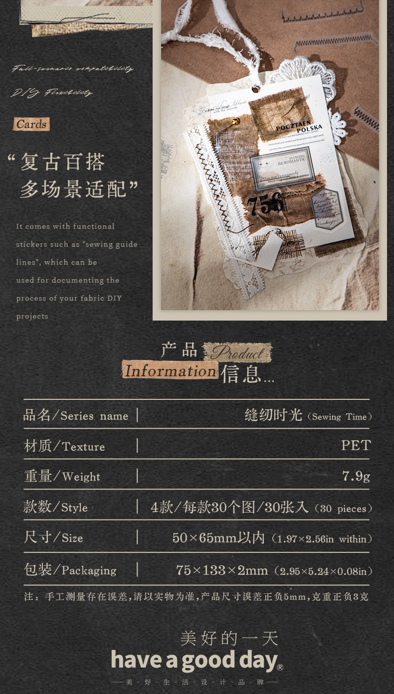 Sewing Time Series PET Stickers 4 Options 30 Pcs image 0