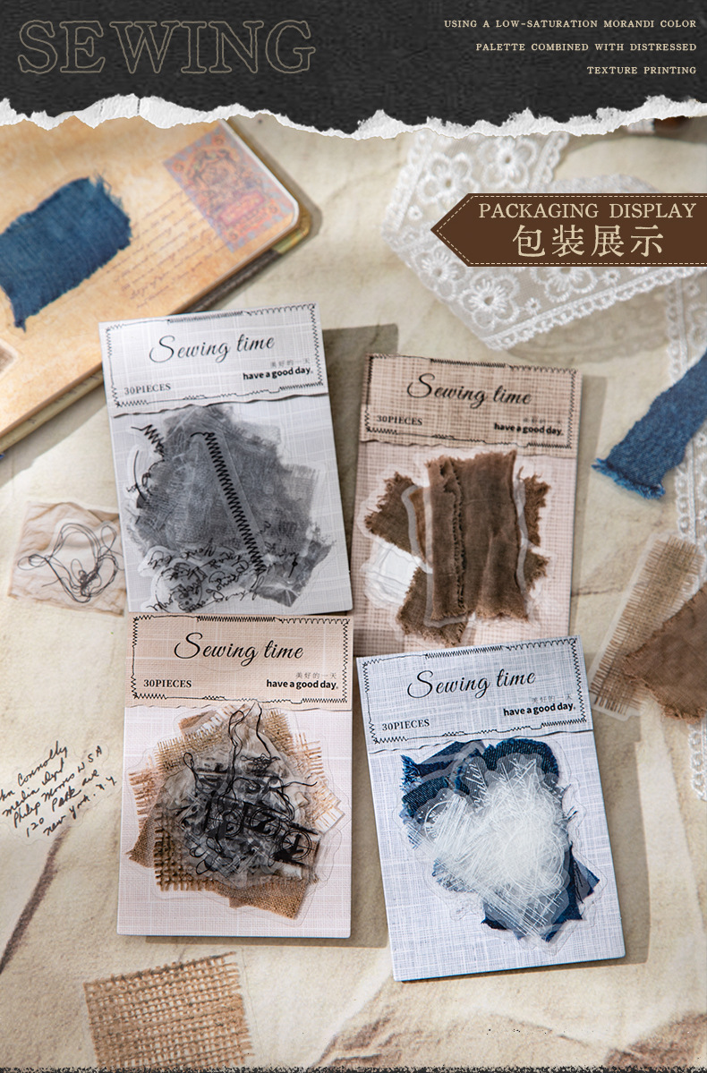 Sewing Time Series PET Stickers 4 Options 30 Pcs