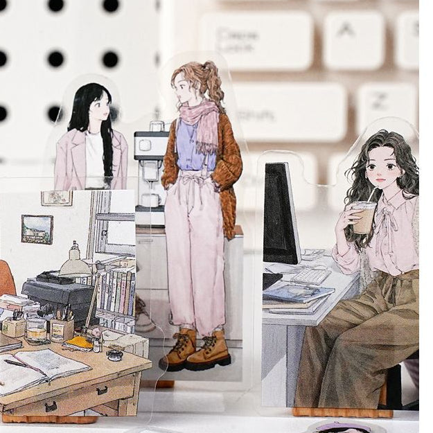 Workplace Life Character PET Stickers 15 Pcs 6 Styles