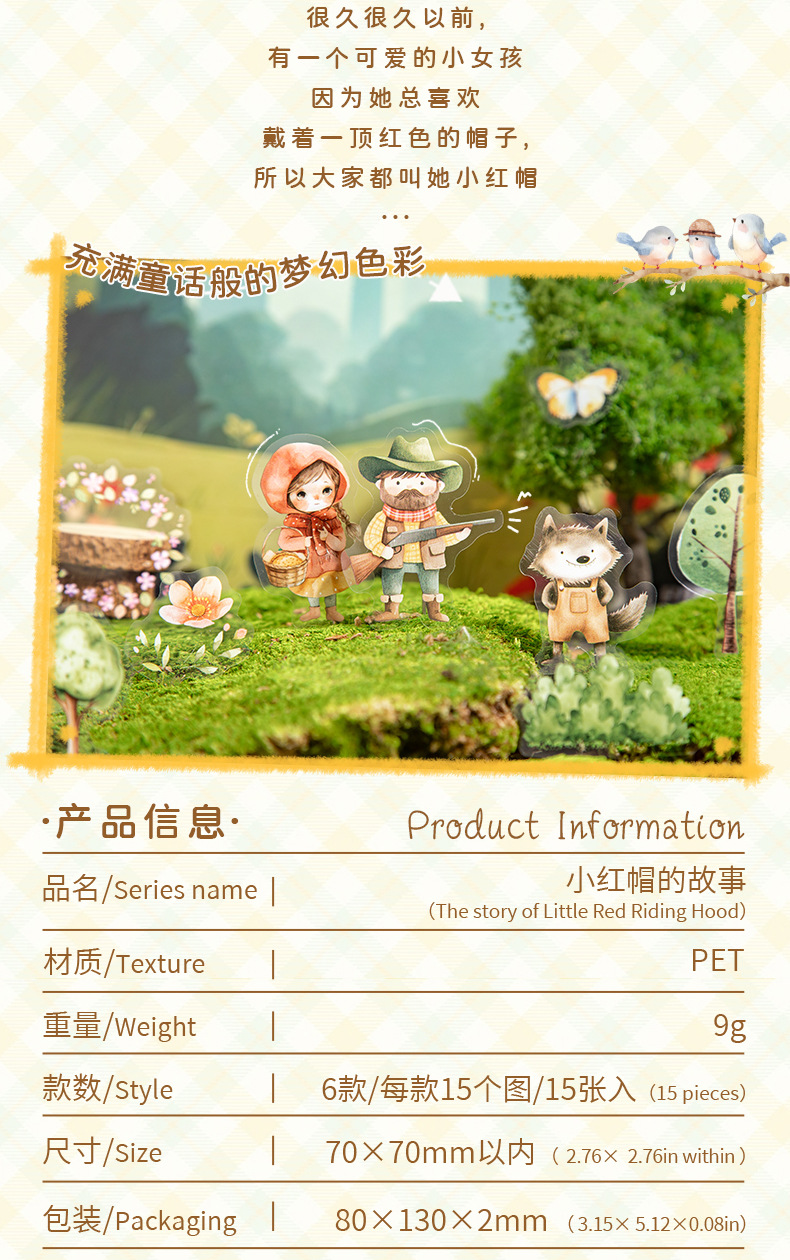 Hermoso día Caperucita Roja serie de historias de cuentos de hadas tema pegatinas para mascotas 6 tipos de collage base de manual