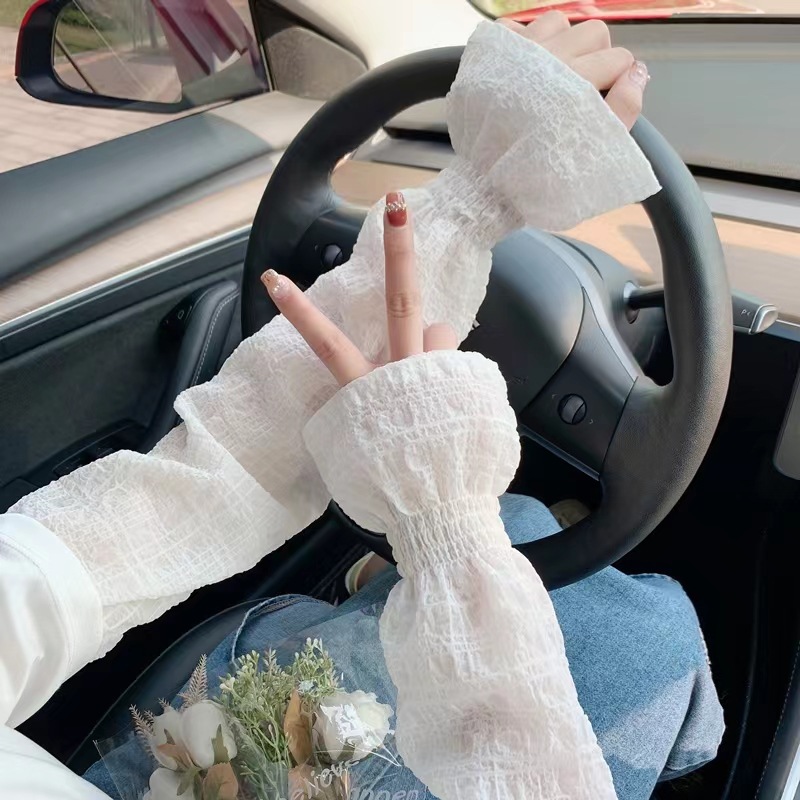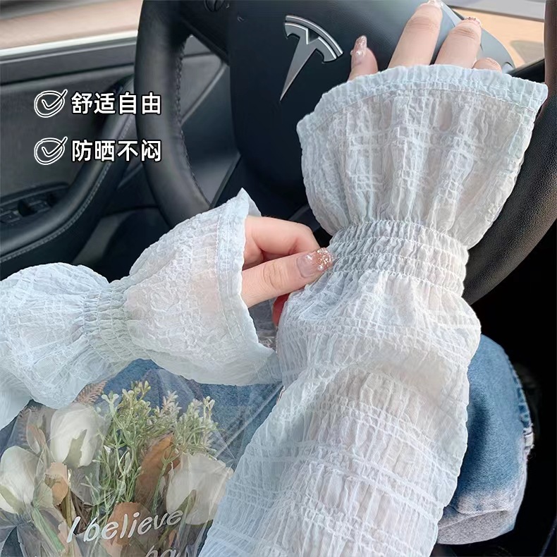 Manga de algodón de gasa, manga abullonada dulce, verano nuevo, manga de cuerno que combina con todo, protector de brazo, manga suelta, transpirable, protector de brazo de verano