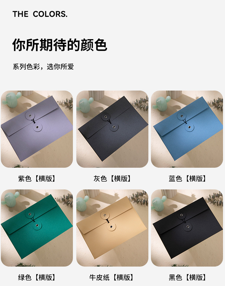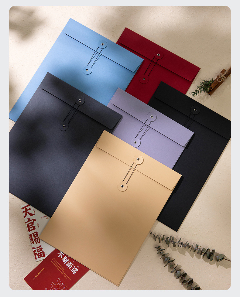 Bolsa de papel de color A4A6 para documentos personalizables, con banda de contrato, bolsa de sobre, bolsa grande para guardar postales