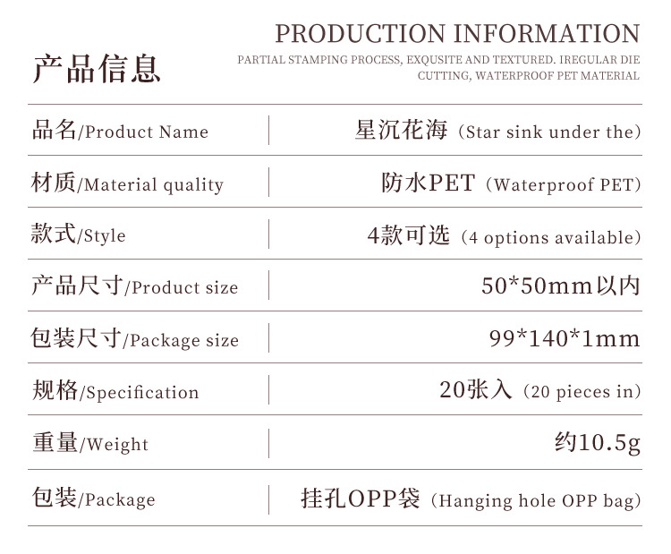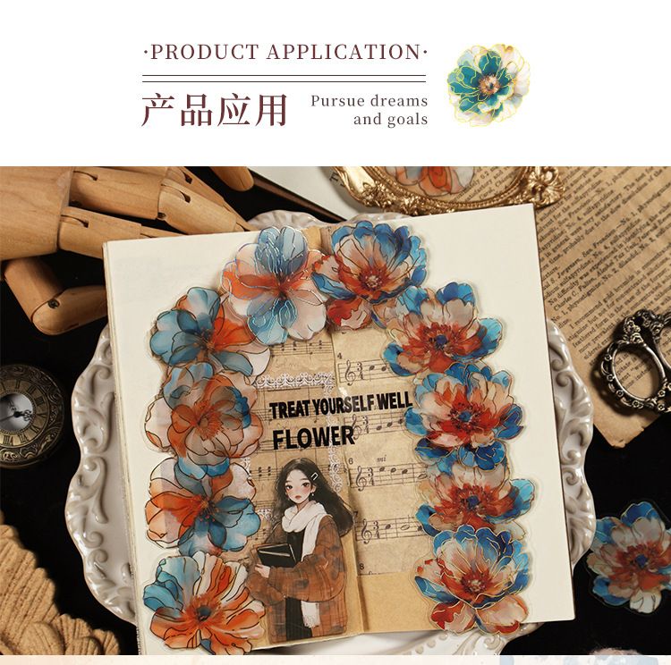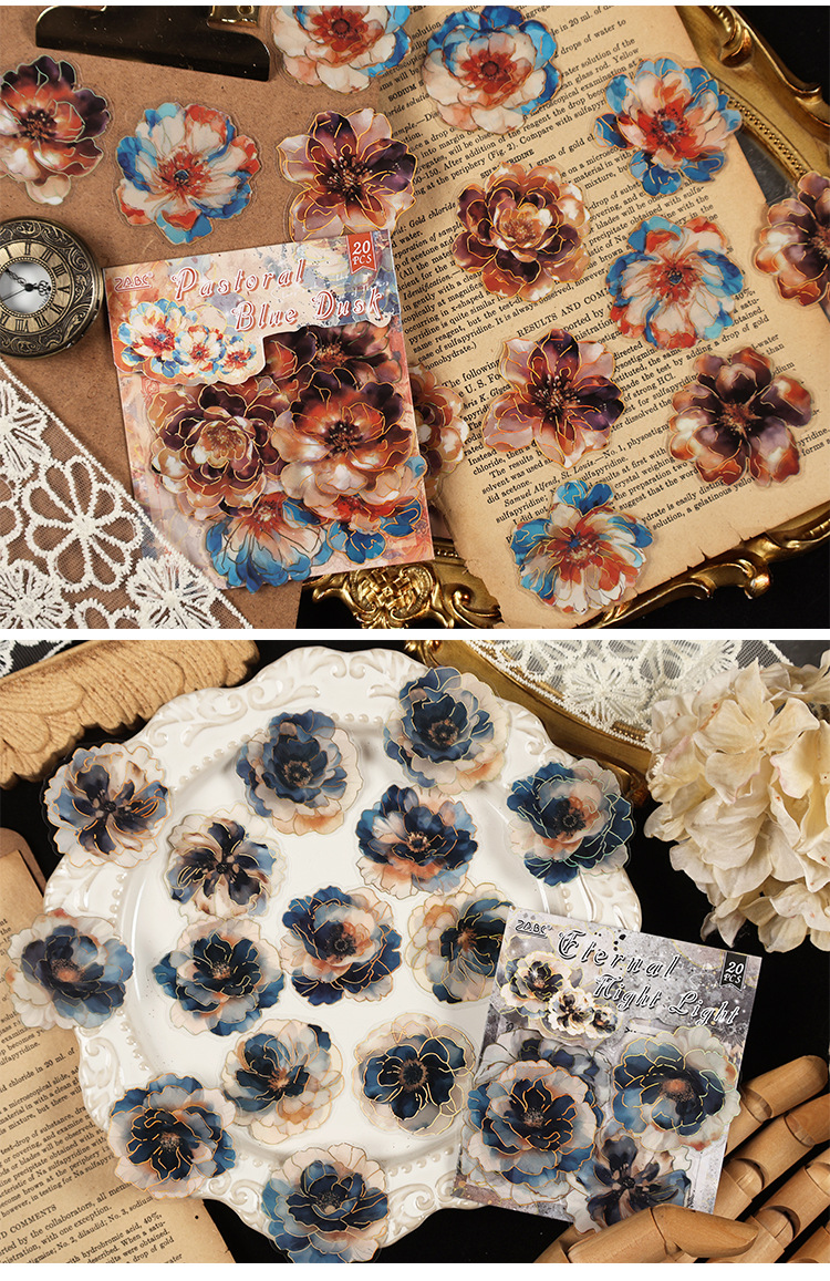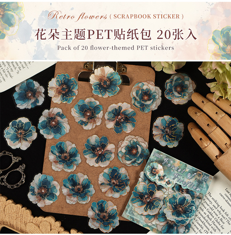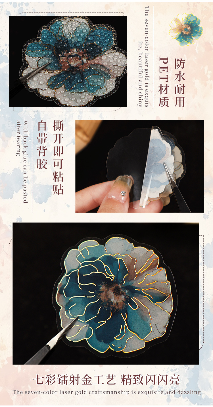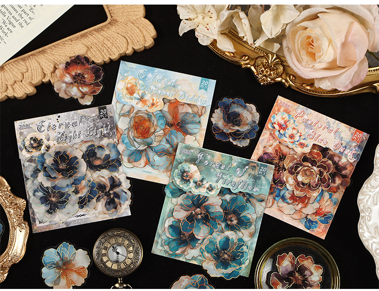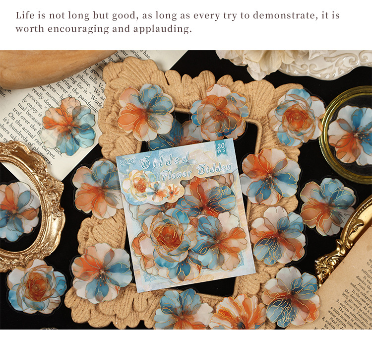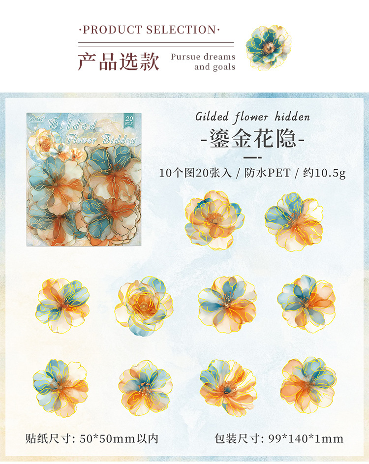 Flower Golden PET Stickers 4 Types 20 Pcs image 1