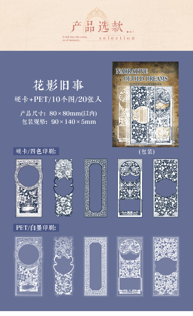 Nostalgic Narrative Series Vintage Hard Card and PET Stickers 6 Styles 20 Pcs image 1