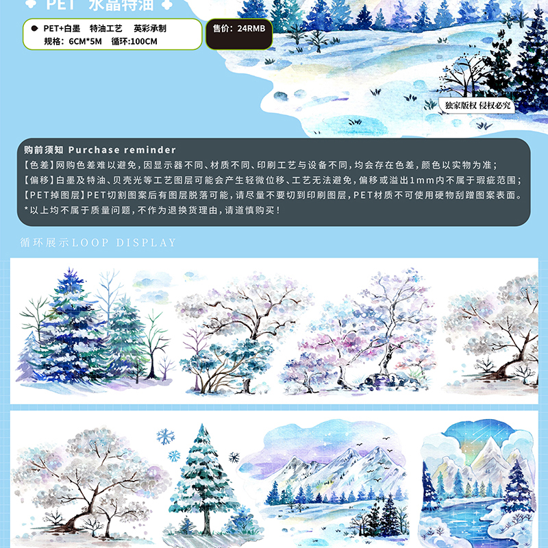 Skiing Snow Scenery PET tape 3 Types 6cm / 100cm