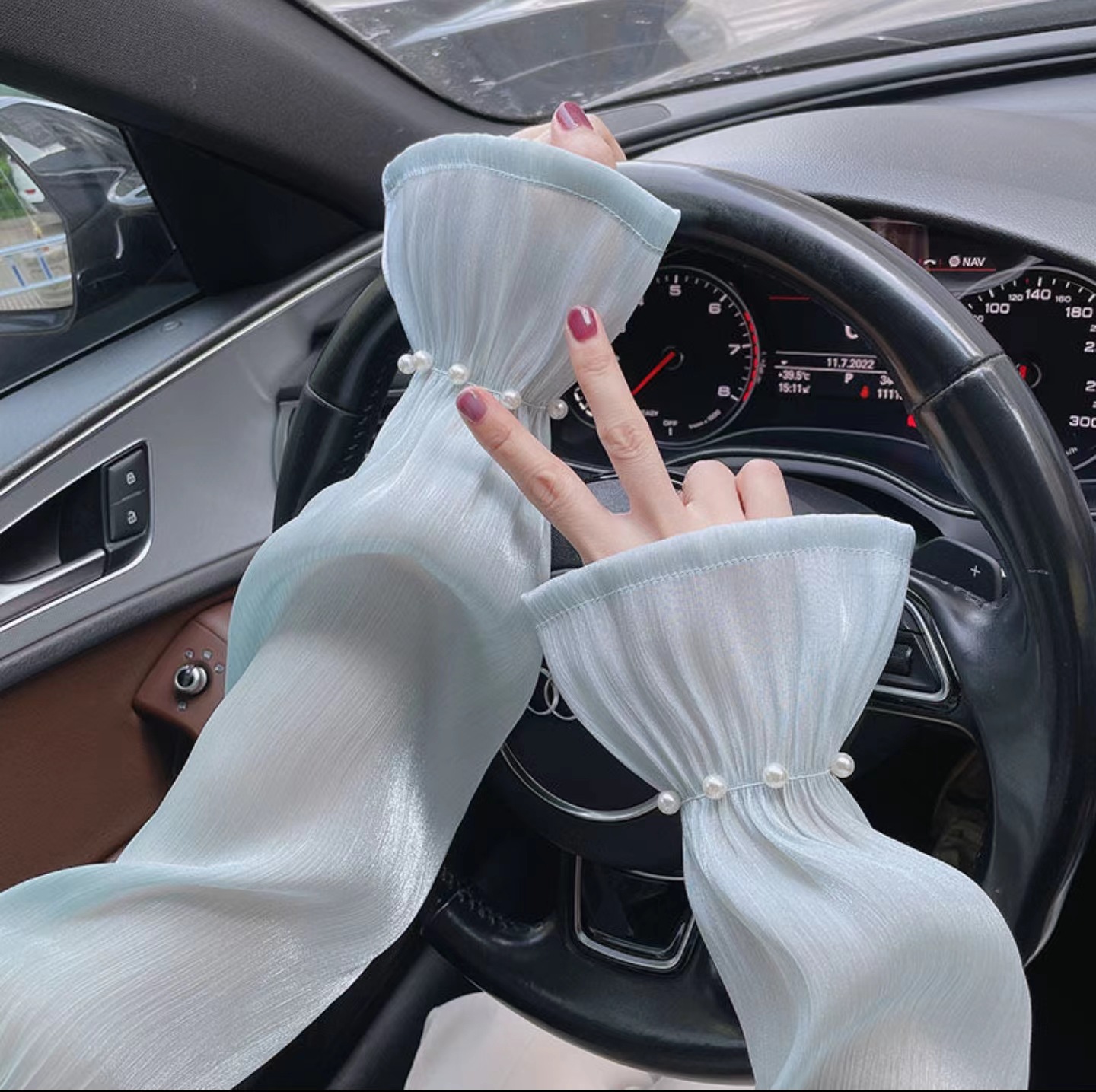 Mangas de hielo de protección solar, versión coreana, para conducción al aire libre, protección solar de gran tamaño, mangas sueltas, venta al por mayor, transpirables, elásticas de perla