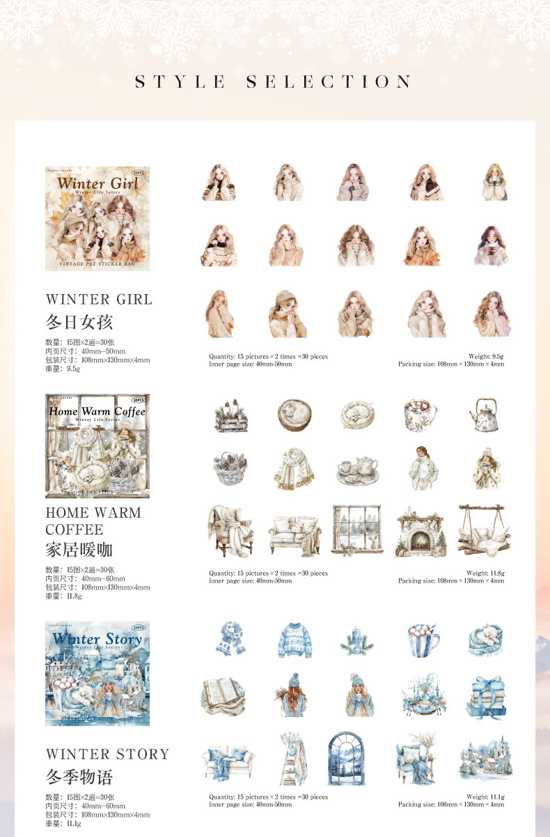 Winter Life Series PET Stickers 30 Sheets 6 Options
