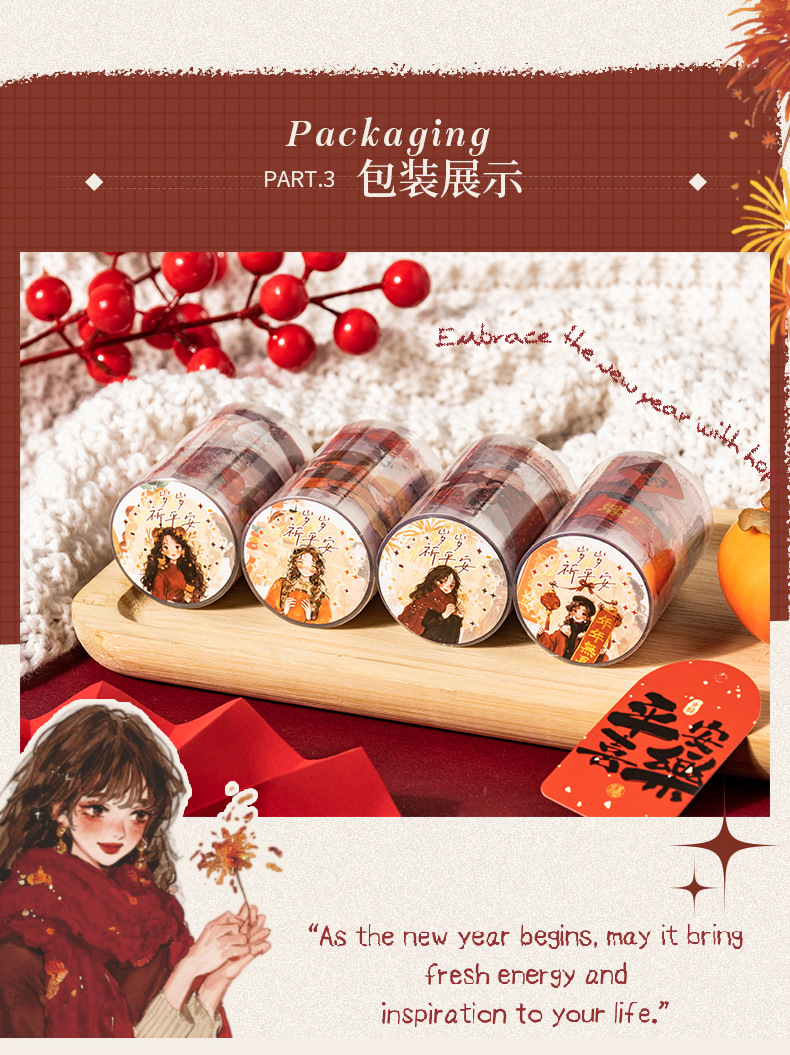 Autumn Themed Character PET Tape 6cm / 2m 4 Types