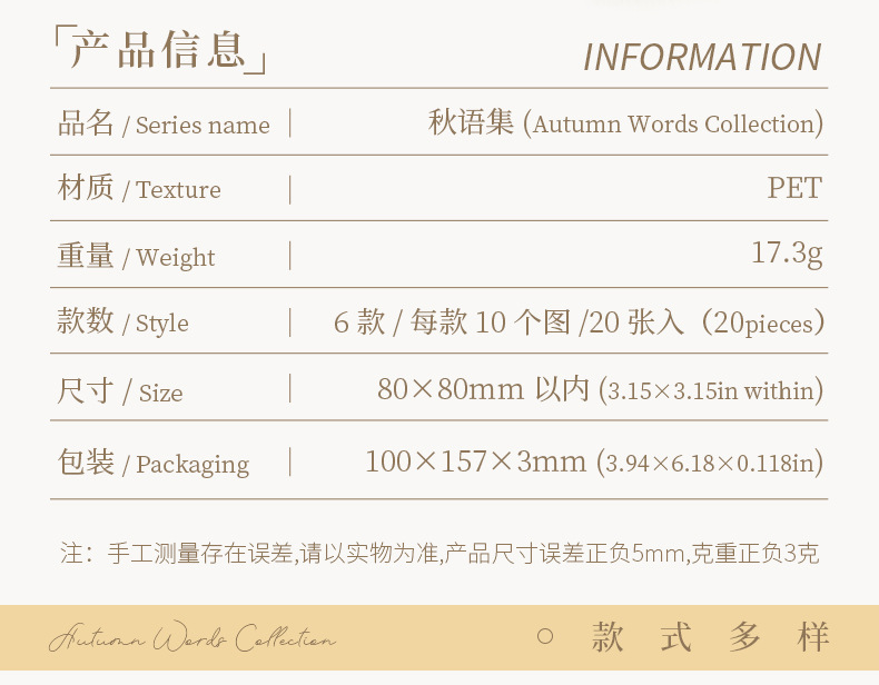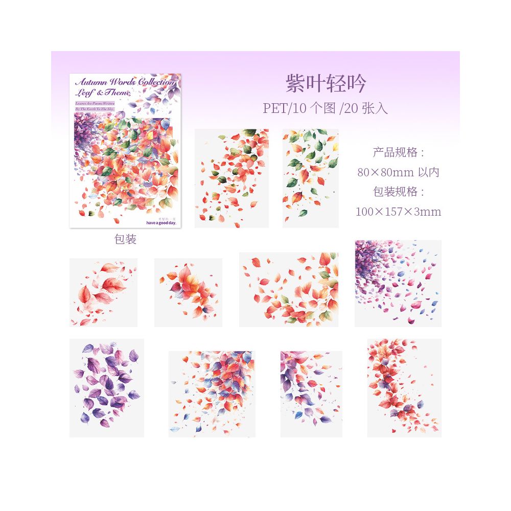 Autumn Words Collection Series Leaf PET Stickers 20 Pcs