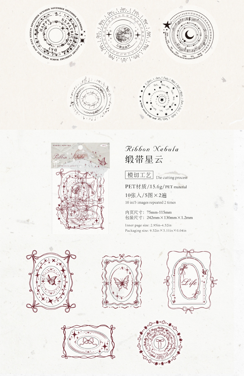 Card Die cut Stickers PET Stickers 10 Sheets 2 Styles