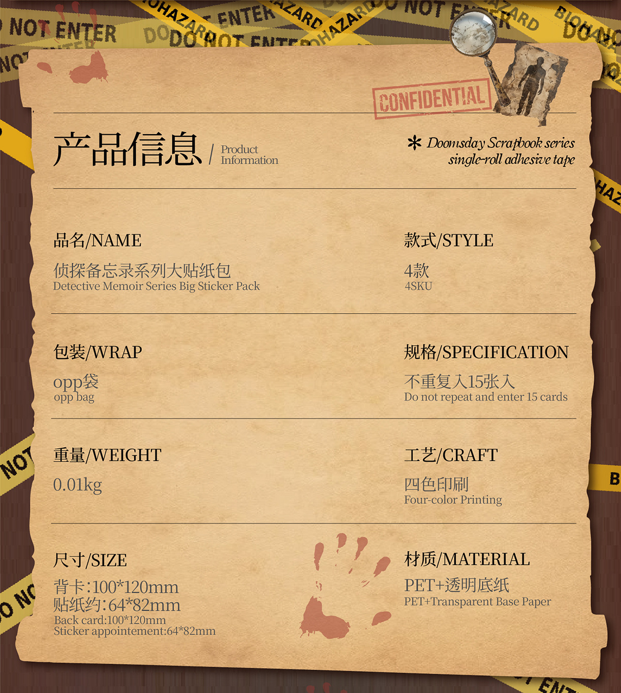 Detective Memo Series Retro PET Stickers 4 Styles image 2