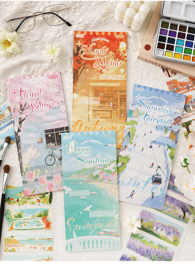 Four Seasons Landscape Series Sticker Book 4 Types 20 Sheets