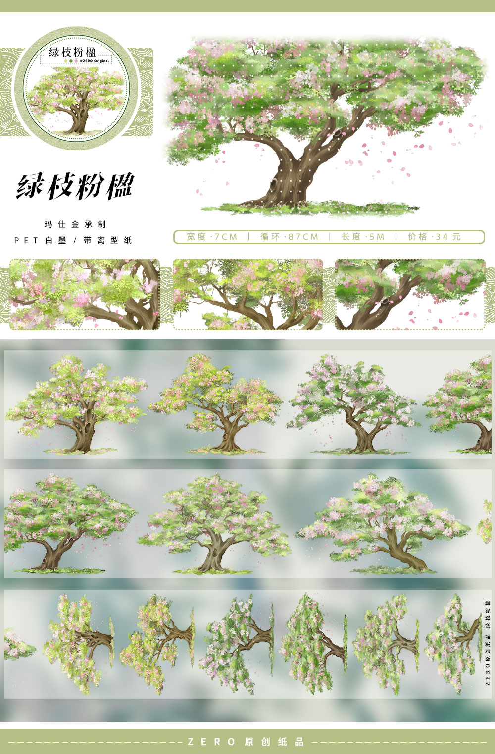 Green fields grass ancient style Landscape PET Tapes 8 Styles