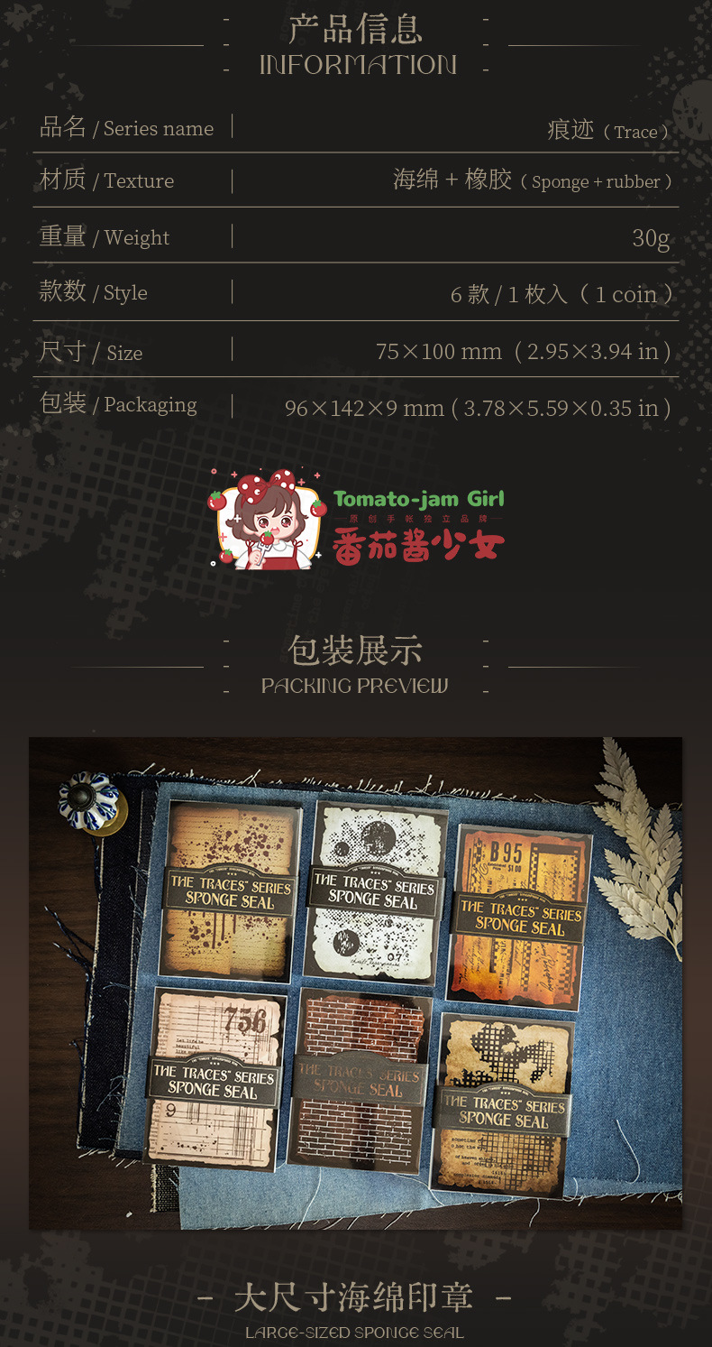 Large Size Rubber Stamp Trace Series Retro 6 Types