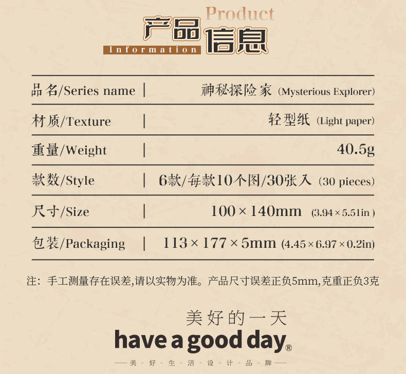 Mysterious Explorer Series Retro Adventure Theme Paper 6 types 30 Sheets image 0