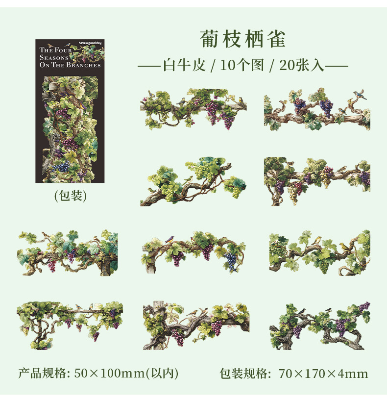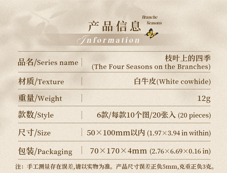 Vintage Leaf Series Paper Stickers 6 Styles 20 Pcs - ViktaShop
